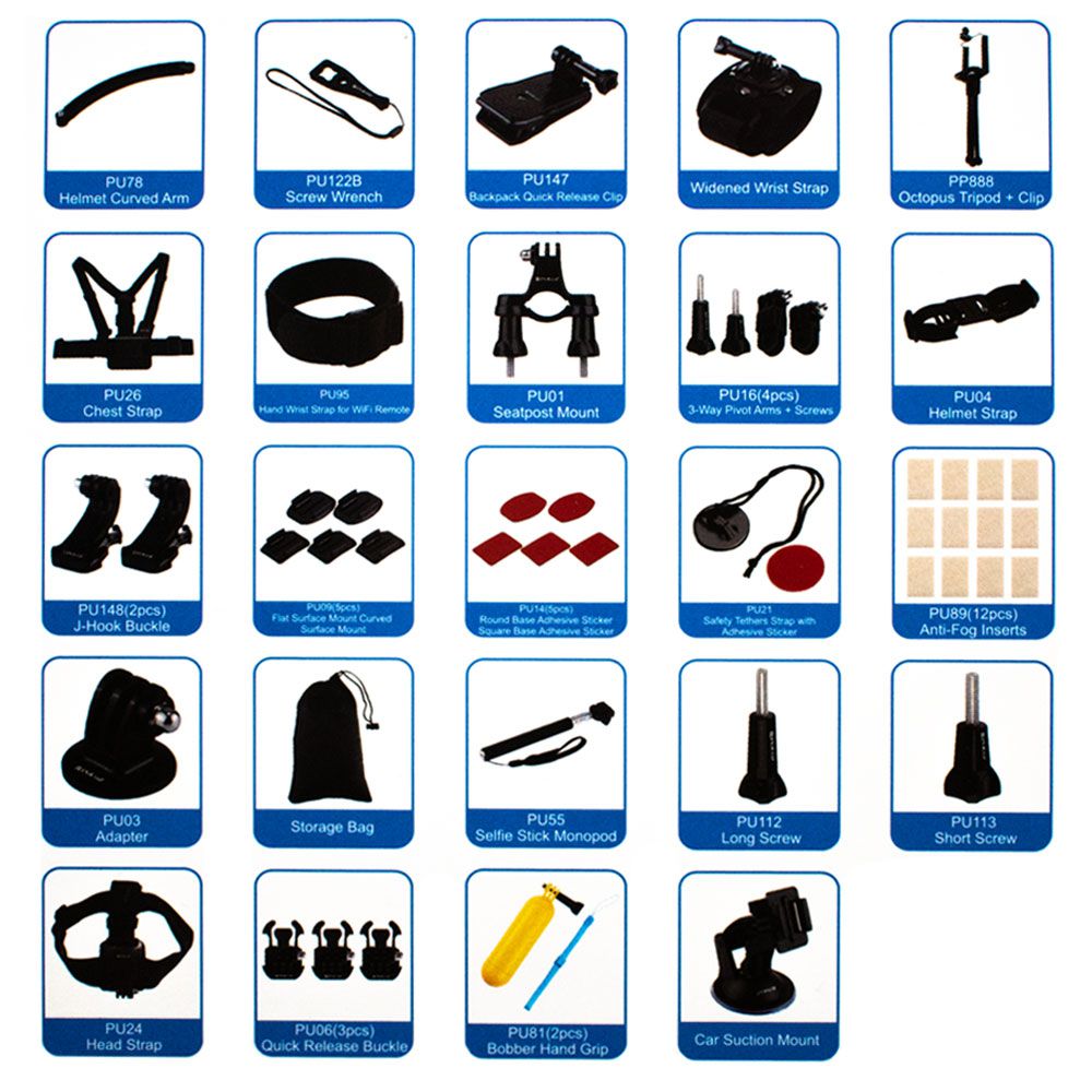 Σούπερ βαλιτσάκι - πλήρες σετ με 50 αξεσουάρ για Action κάμερες, με την εγγύηση ποιότητας της Puluz®!