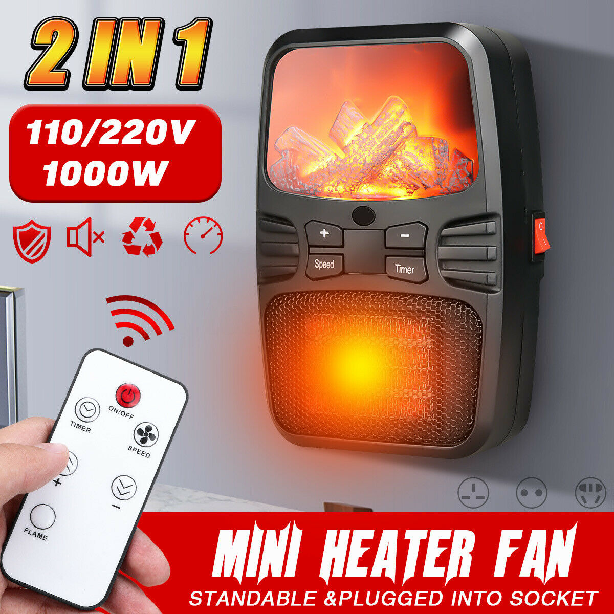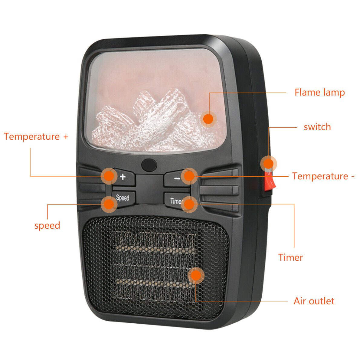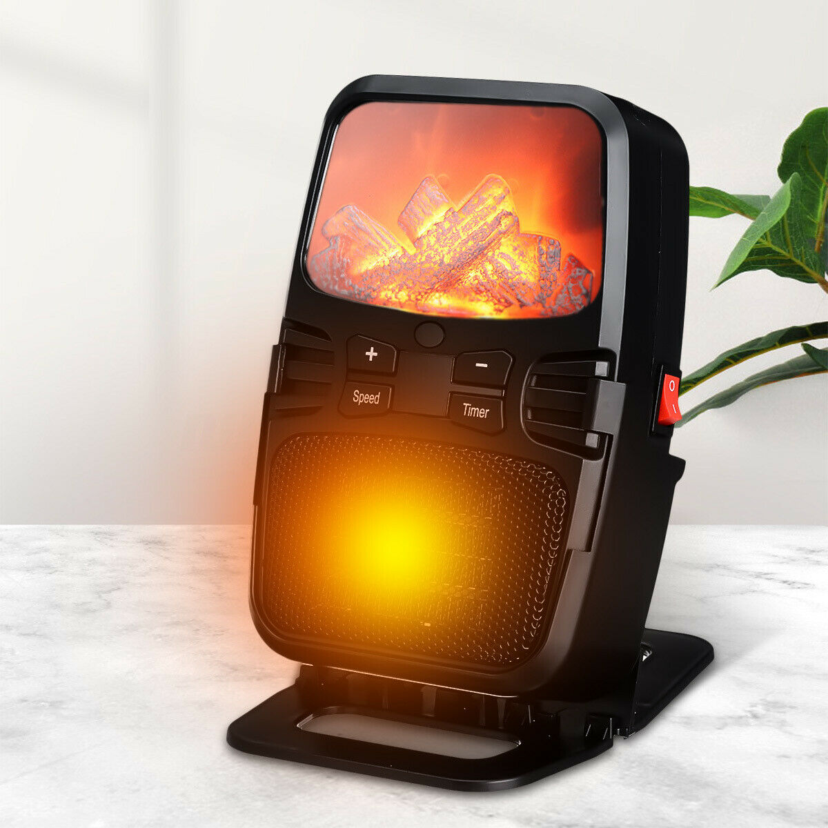 Η μίνι σόμπα πρίζας Flame Heater 1000w διαθέτει οθόνη - ψηφιακό θερμοστάτη (έως 32 βαθμούς Κελσίου!) για να ρυθμίζετε την επιθυμητή θερμοκρασία αλλά και ανεμιστήρα 2 ταχυτήτων για να μεταδίδει την ζέστη σε όλο τον χώρο. Επιπλέον διαθέτει και χρονοδιακόπτη.