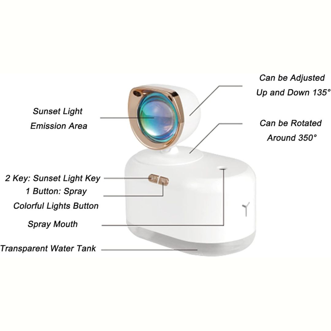 Το ιδιαίτερο χαρακτηριστικό του είναι ο ενσωματωμένος LED προτζέκτορας που δημιουργεί ένα εντυπωσιακό εφέ ηλιοβασιλέματος, προσφέροντας μια χαλαρωτική και ρομαντική αίσθηση.