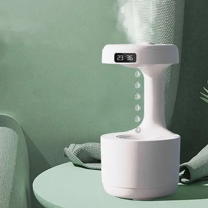 Υγραντήρας Σταγονιδίων με Τεχνολογία Κατά της Βαρύτητας - Αρωματοθεραπεία με Οθόνη LED & Ρολόι 200ml Anti Gravity Drop Water Andowl