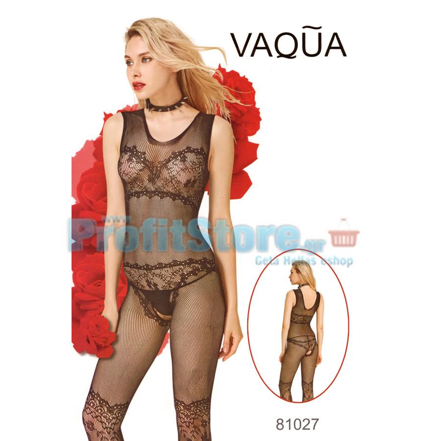 Sexy Κορμάκι Δίχτυ με Μανίκια και Κάθετες Γραμμές VAQUA-81003