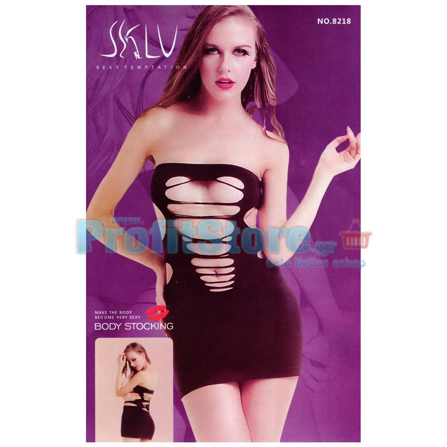 Σέξι Μίνι Φόρεμα Στράπλες με Σκισήματα 8218 - Sexy Lingerie Bodystockings. Ελαστικό ONE SIZE. Σε μαύρο χρώμα.