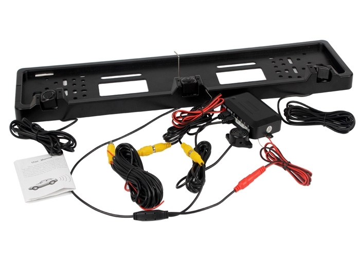 Το πλαίσιο πινακίδας ταιριάζει σε ευρωπαϊκές πινακίδες και σας παρέχει ότι χρειάζεστε για να κάνετε όπισθεν ή να παρκάρετε το αυτοκίνητο σας, χωρίς να ακουμπήσετε το πίσω όχημα. Διαθέτει δύο αισθητήρες υπερήχων για την ανίχνευση εμποδίων. Χρησιμοποιεί σύνδεση RCA για να συνδεθεί εύκολα με οποιοδήποτε Monitor διαθέτετε και να έχετε εικόνα όταν κάνετε όπισθεν. Παίρνει ρεύμα από τα πίσω φώτα ώστε να λειτουργεί αυτόματα όταν το αυτοκίνητο κάνει όπισθεν.