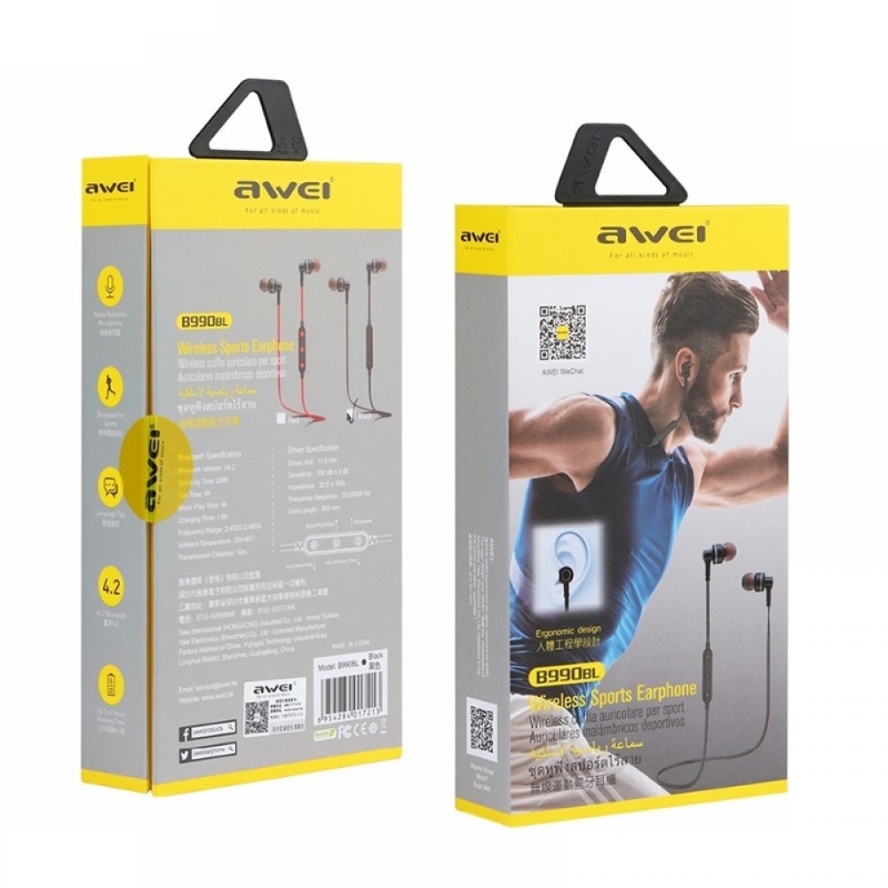 Τα νέα αθλητικού τύπου ακουστικά της Awei είναι ο πιο απλός τρόπος να ακούτε την αγαπημένη σας μουσική την ώρα που γυμνάζεστε. Η νέα τεχνολογία Bluetooth 4.1, συνδέει τα ακουστικά σας απευθείας στο τηλέφωνό σας χωρίς παρεμβολές και διακοπές στην ακρόαση. Υποστηρίζουν κάθε συσκευή με λειτουργία Bluetooth (iOS ή Android) ενώ επιπλέον διαθέτουν ενσωματωμένο μικρόφωνο για διαχείριση κλήσεων.