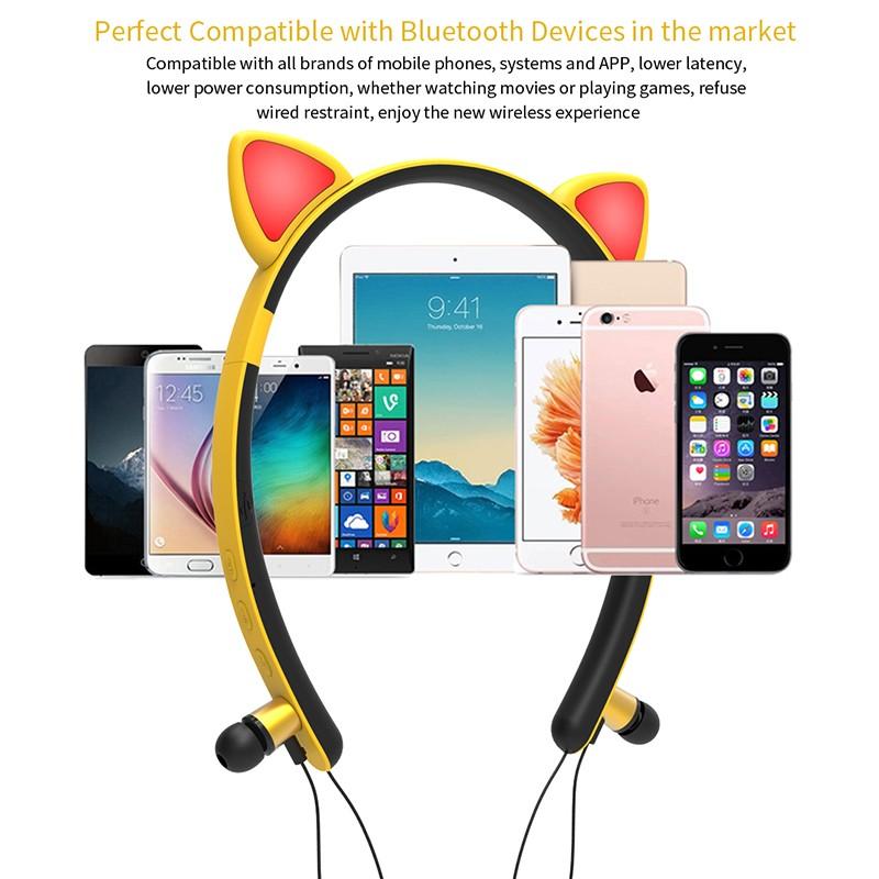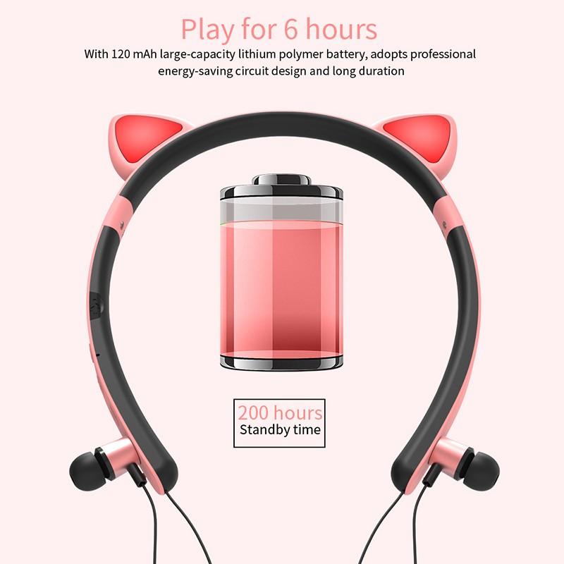 Φορητά ακουστικά που συνδέονται μέσω Bluetooth με το κινητό, το τάμπλετ ή το PC σας. Σε υπέροχο σχεδιασμό με αυτάκια γάτας στο πάνω μέρος που διαθέτουν φωτισμό LED.