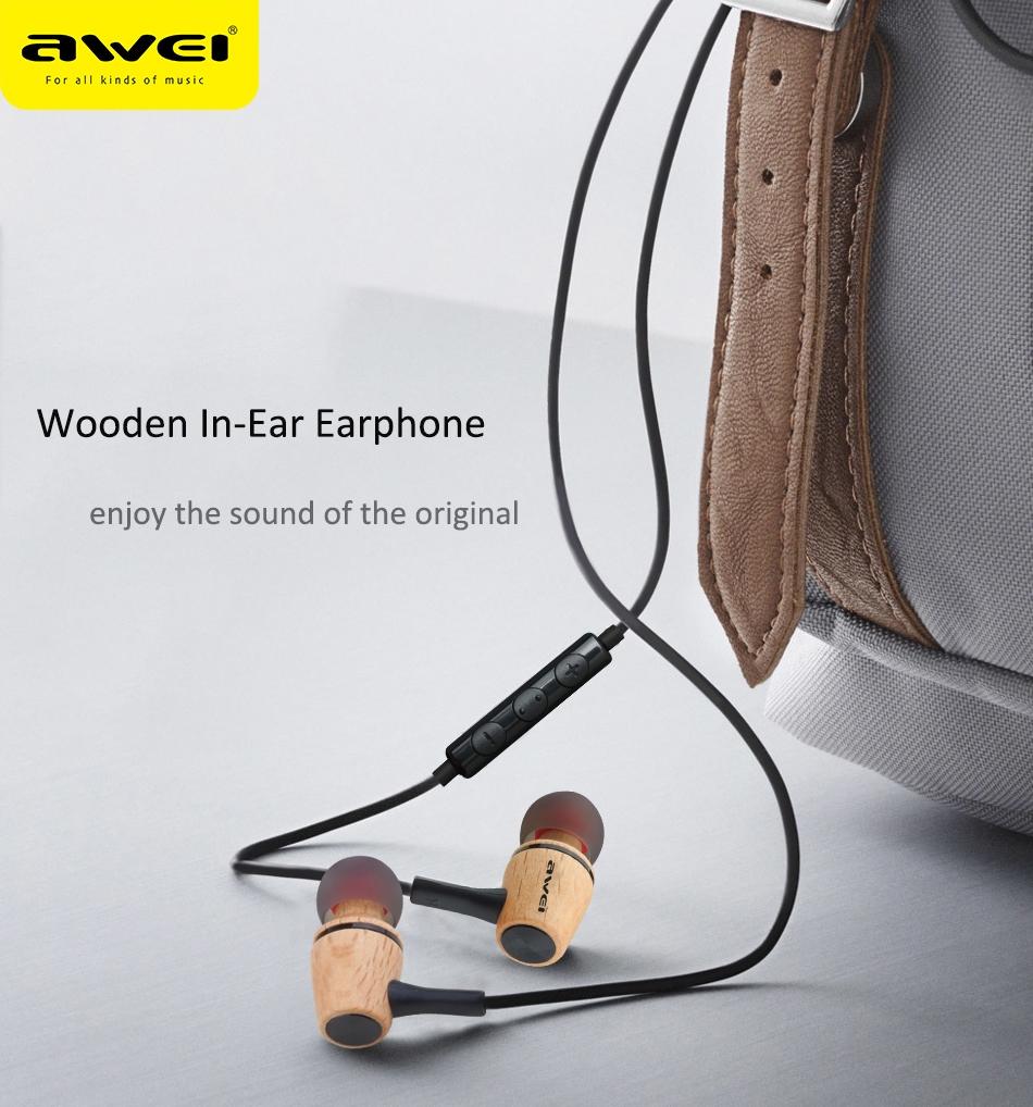 Ξύλινα Ακουστικά Awei - Deepbass In-Ear Earphones