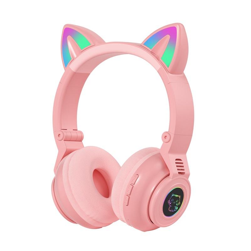 Φορητά ακουστικά με αυτάκια γάτας που φωτίζουν πολύχρωμα με LED, συνδέονται μέσω bluetooth ή καλωδίου 3,5mm με το κινητό, το τάμπλετ ή το PC σας για να απολαύσετε την αγαπημένη σας μουσική όπου κι αν βρίσκεστε!