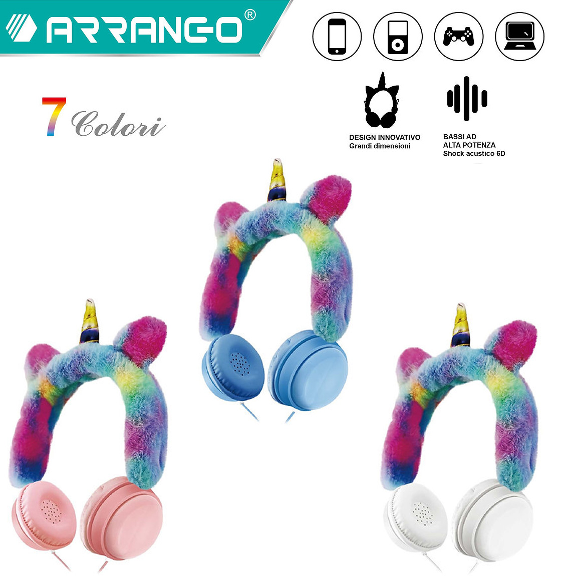 ARRANGO® Ενσύρματα Αναδιπλούμενα Παιδικά Ακουστικά On Ear με Ενσωματωμένο Μικρόφωνο Unicorn σε Διάφορα Χρώματα