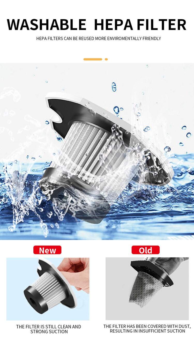 Το φίλτρο που περιλαμβάνει το σκουπάκι είναι επαναχρησιμοποιούμενο και συγκρατεί σχεδόν όλα τα μικροσωματίδια που βρίσκονται στον αέρα. Συγκρατεί επίσης αλλεργιογόνα σωματίδια κι έτσι δεν επανέρχονται αυτά στην ατμόσφαιρα. Το φίλτρο μπορεί να καθαριστεί και να πλυθεί.