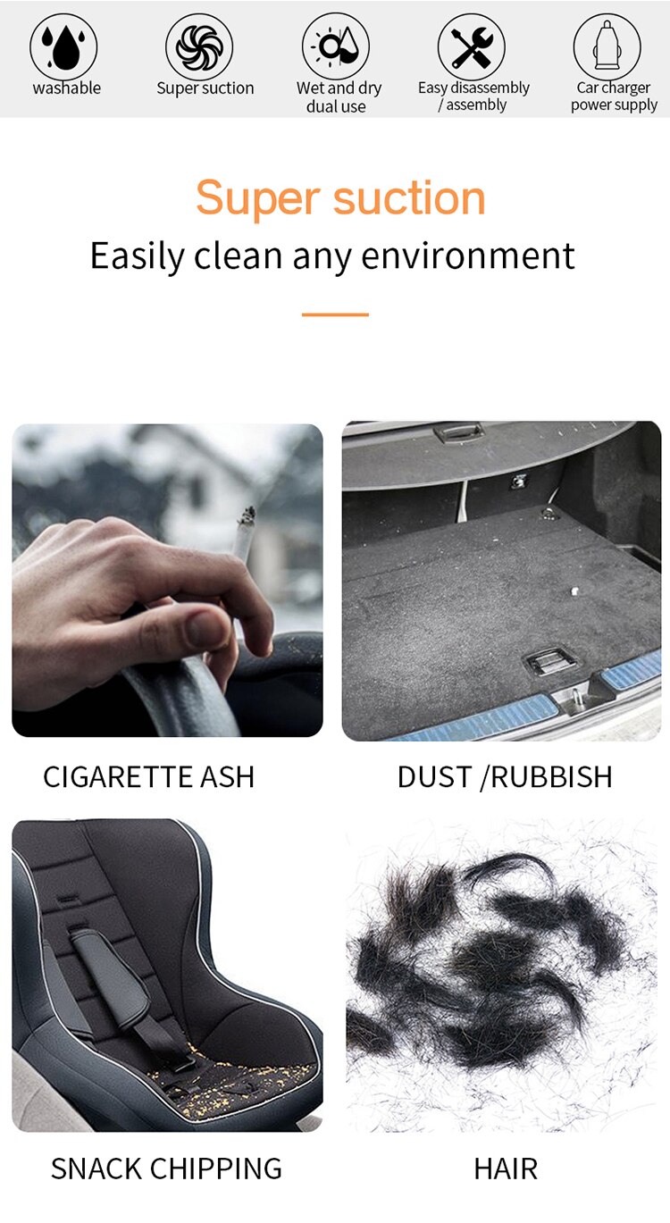 Το Ηλεκτρικό Σκουπάκι της Carsun, είναι κατάλληλο τόσο για στερεά όσο και για υγρά, έτσι ώστε να σας διευκολύνει στον καθημερινό καθαρισμό του αυτοκινήτου αλλά και του σπιτιού σας. Ισχυρό, αποτελεσματικό και ευέλικτο, με κινητήρα υψηλής απόδοσης είναι πάντα έτοιμο να αφαιρέσει και την πιο δύσκολη βρωμιά.