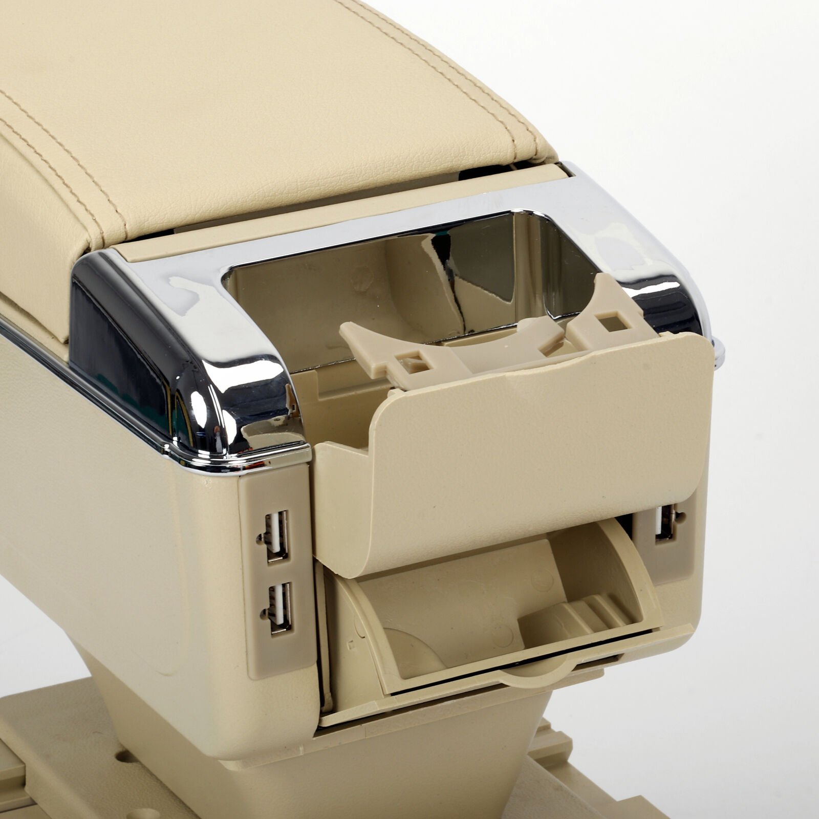 Το πολυλειτουργικό υποβραχιόνιο αυτοκινήτου σε μπεζ απόχρωση με μεταλλικές λεπτομέρειες και μοντέρνο σχεδιασμό, προσφέρει πολύ περισσότερα από έναν απλό τεμπέλη: αποτελεί μια έξυπνη προσθήκη που αναβαθμίζει τη συνολική οδηγική εμπειρία.