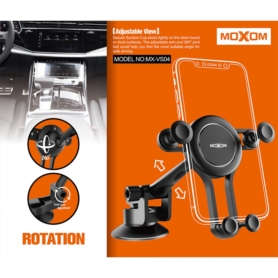 Σταθερή μοντέρνα βάση κινητού Moxom με βεντούζα για το αυτοκίνητο σας!