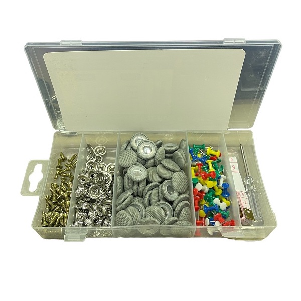 Πλήρες κιτ με 60 τμχ αγκράφες οροφής αυτοκινήτου, 60 πολύχρωμες ακίδες, 1 τεμ. κατσαβίδι και 1 τεμ. μεζούρα, βολικό στη χρήση.