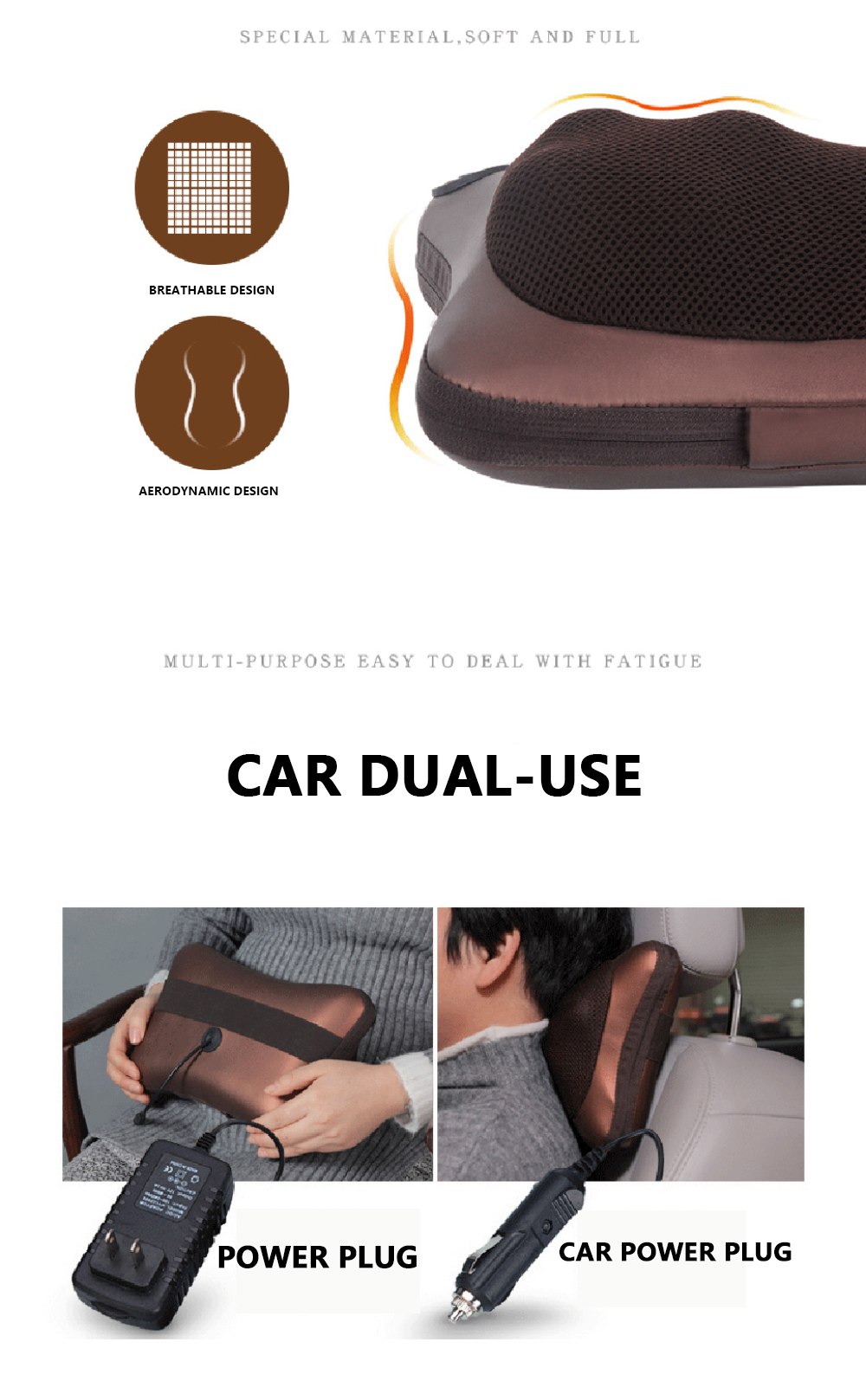 Μοναδικό μαξιλάρι μασάζ υψηλής τεχνολογίας ιδανικό για να ανακουφίσει οδηγό (ακόμα και όταν οδηγεί) ή συνοδηγό από ενοχλήσεις στον αυχένα. Ιδανική λύση για πολύωρα ταξίδια.