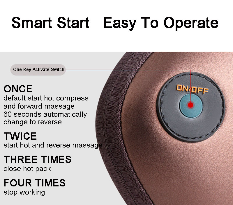 Οι απαλές κινήσεις κεφαλών του μαξιλαριού σε συνδυασμό με την θέρμανση θα σας χαλαρώσουν και ανακουφίσουν. Οι κεφαλές μασάζ κινούνται δεξιόστροφα ή αριστερόστροφα.