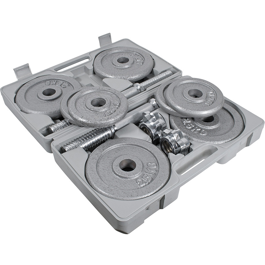 Σετ αλτήρων με 20kg Βάρη σε πλαστικό βαλιτσάκι μεταφοράς για εύκολη μεταφορά και αποθήκευση.