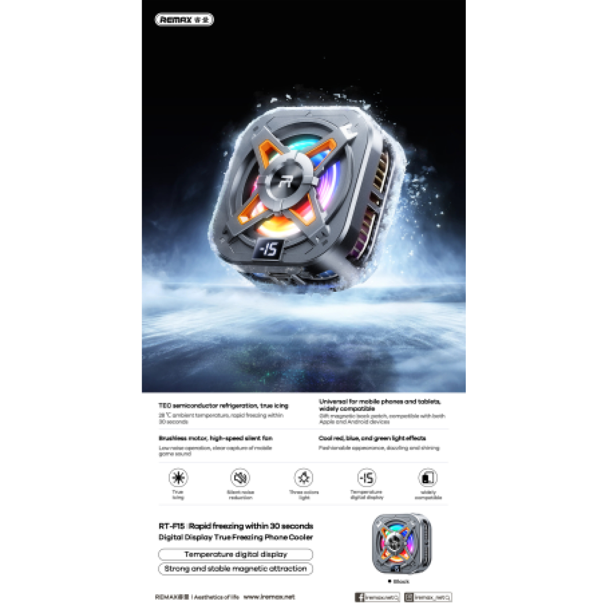 Το Remax RT-F15 Cooling Fan αποτελεί μια προηγμένη λύση ψύξης για smartphones, σχεδιασμένη για να διατηρεί τη συσκευή σου σε ιδανική θερμοκρασία ακόμη και σε έντονη χρήση όπως gaming, streaming και multitasking.
