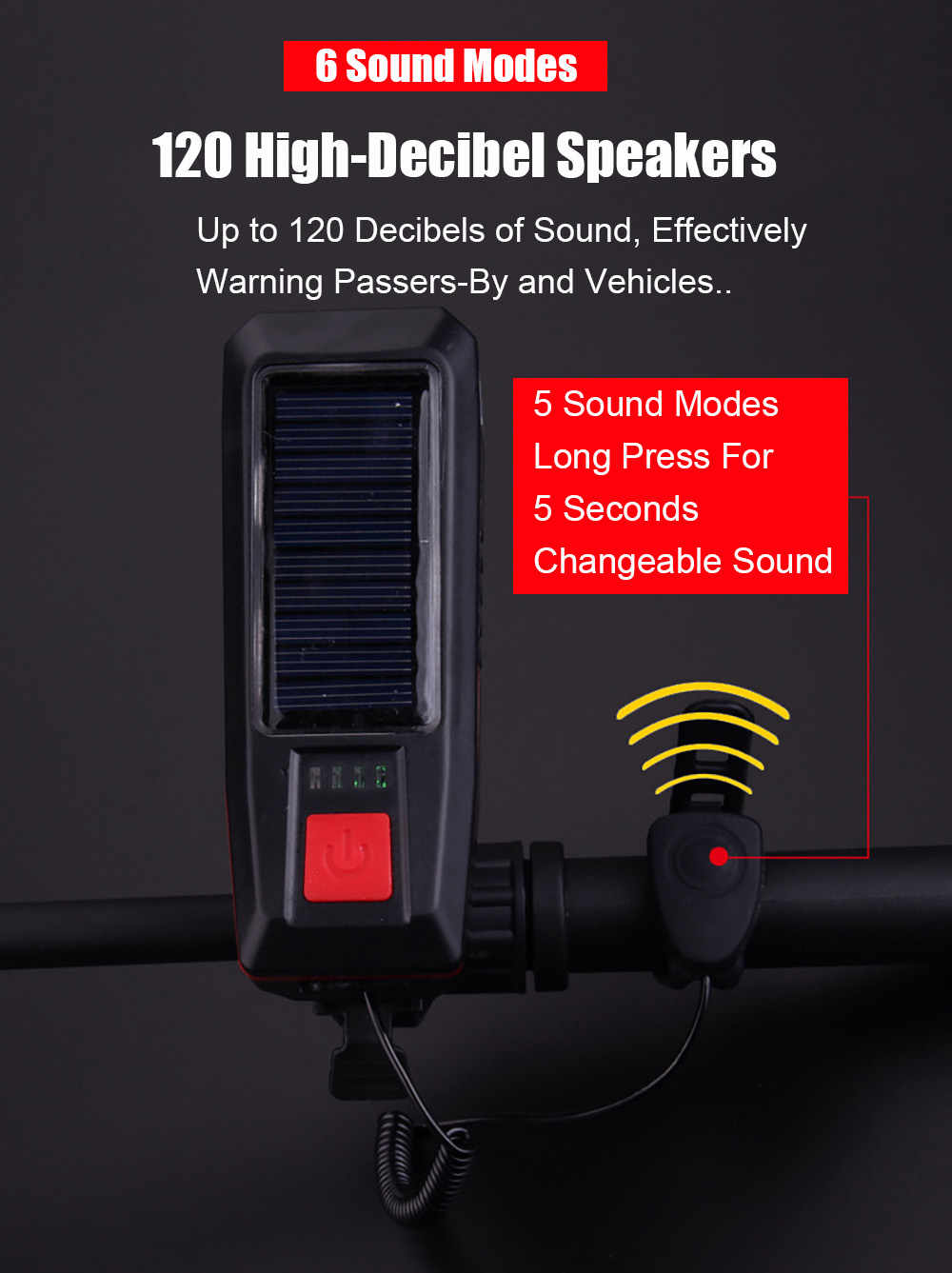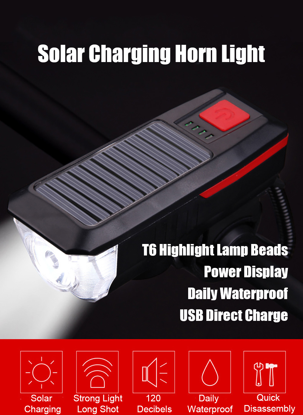 Ισχυρό φως ποδηλάτου και κόρνα όπου χρησιμοποιεί την ενέργεια του ήλιου!