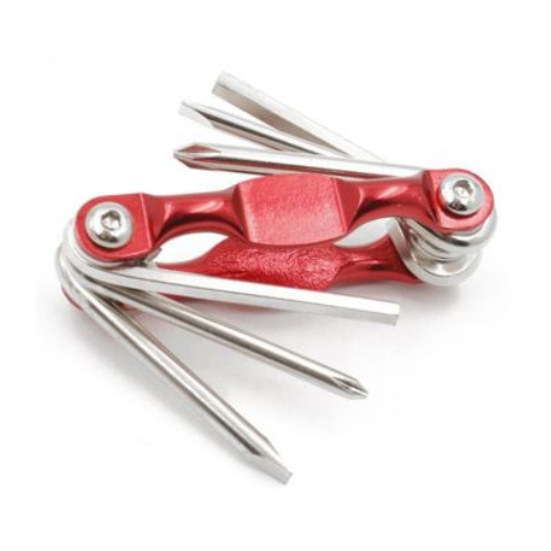 Ένα ελαφρύ κομψό και εξελιγμένο πολυεργαλείο που ικανοποιεί όλες τις ανάγκες του ποδηλάτη και τις σχέσεις του με τις βίδες του ποδηλάτου. Σε ανθεκτική αλουμινένια θήκη με διπλή βίδα που κρατάει μαζί όλο το μηχανισμό όταν το χρησιμοποιείτε. Το εργαλείο περιέχει 2 κατσαβίδια με ίσια μύτη, 2 σταυροκατσάβιδα και 2 κλειδιά allen.