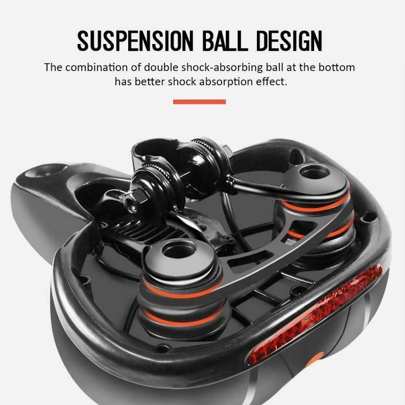 ✔️ Δύο ανεξάρτητα ελατήρια και σφαιρικοί αποσβεστήρες κραδασμών στο κάτω μέρος της σέλας λειτουργούν συνδυαστικά, μειώνοντας αποτελεσματικά τους κραδασμούς από ανωμαλίες του οδοστρώματος.