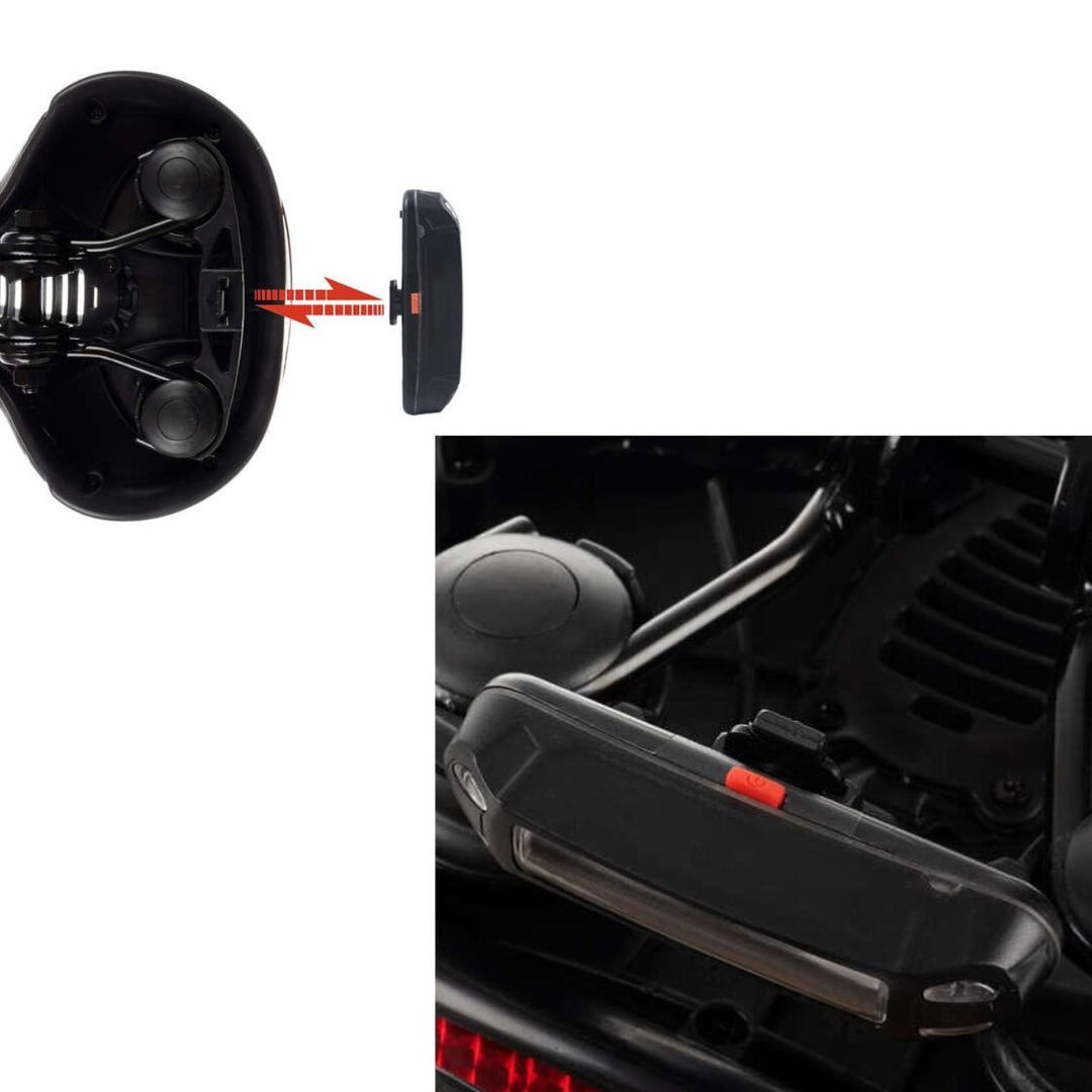 ✔️ Το φωτιστικό αποσπάται εύκολα για φόρτιση μέσω καλωδίου micro USB, χωρίς να χρειάζεται να αφαιρείς ολόκληρη τη σέλα.