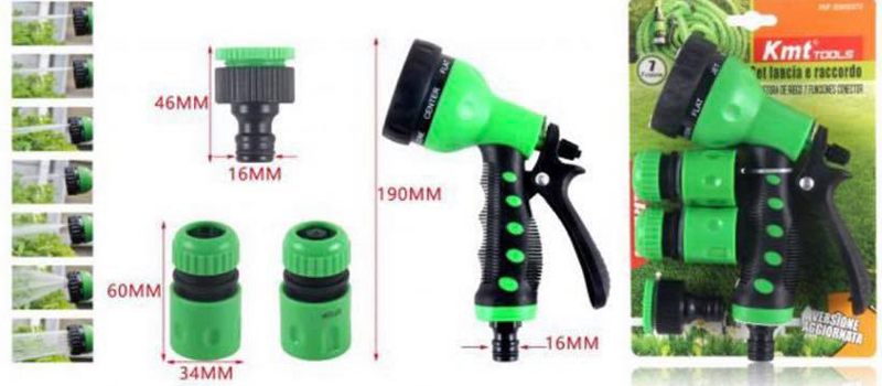 Αναβαθμίστε την εμπειρία ποτίσματος με αυτό το πρακτικό και ολοκληρωμένο σετ, το οποίο περιλαμβάνει πολυλειτουργικό πιστόλι ψεκασμού και όλους τους απαραίτητους συνδέσμους.