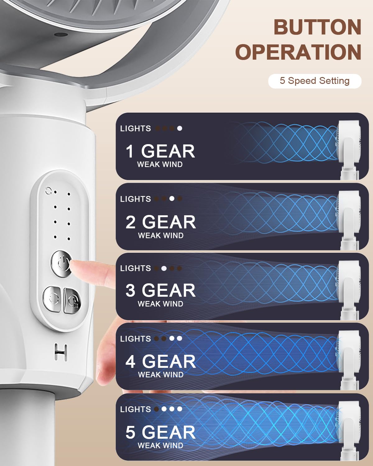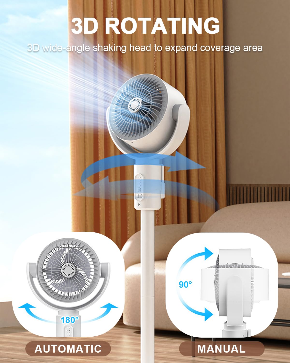 Με 5 επίπεδα έντασης αέρα, ρυθμιζόμενη γωνία και χρονοδιακόπτη έως 8 ώρες, προσφέρει στοχευμένη και αποδοτική κυκλοφορία αέρα.