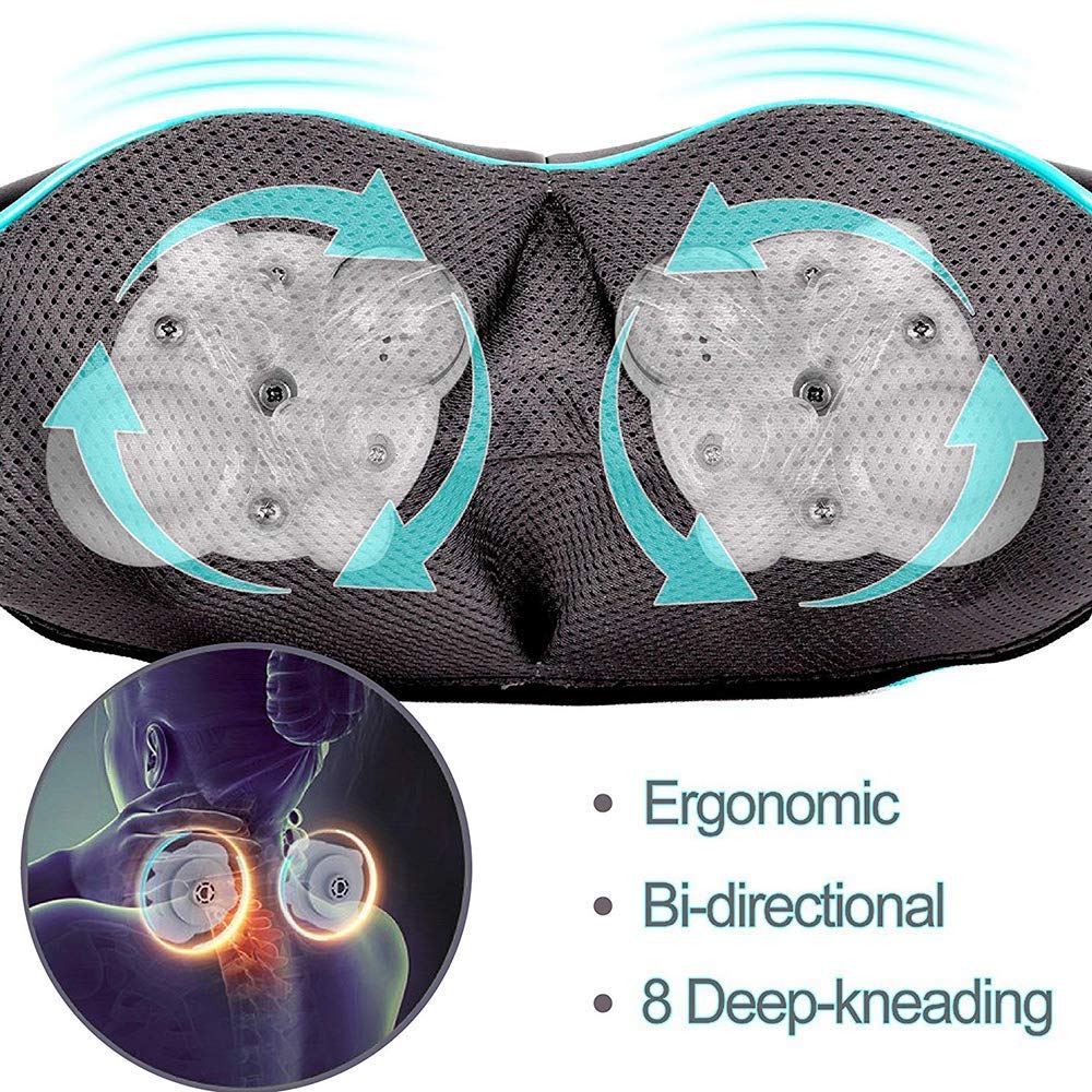 Είναι εξοπλισμένο με 8 κυλίνδρους (μπάλες μασάζ) που πραγματοποιούν κυκλικές κινήσεις 3D με σχεδιασμό U (U-DESIGN) για τέλεια εφαρμογή στον αυχένα ενώ ταυτόχρονα εκλύουν και θερμότητα. Χρησιμοποιήστε την συσκευή για την τόνωση της κυκλοφορίας του αίματος, την χαλάρωση και την ανακούφιση των κουρασμένων μυών!