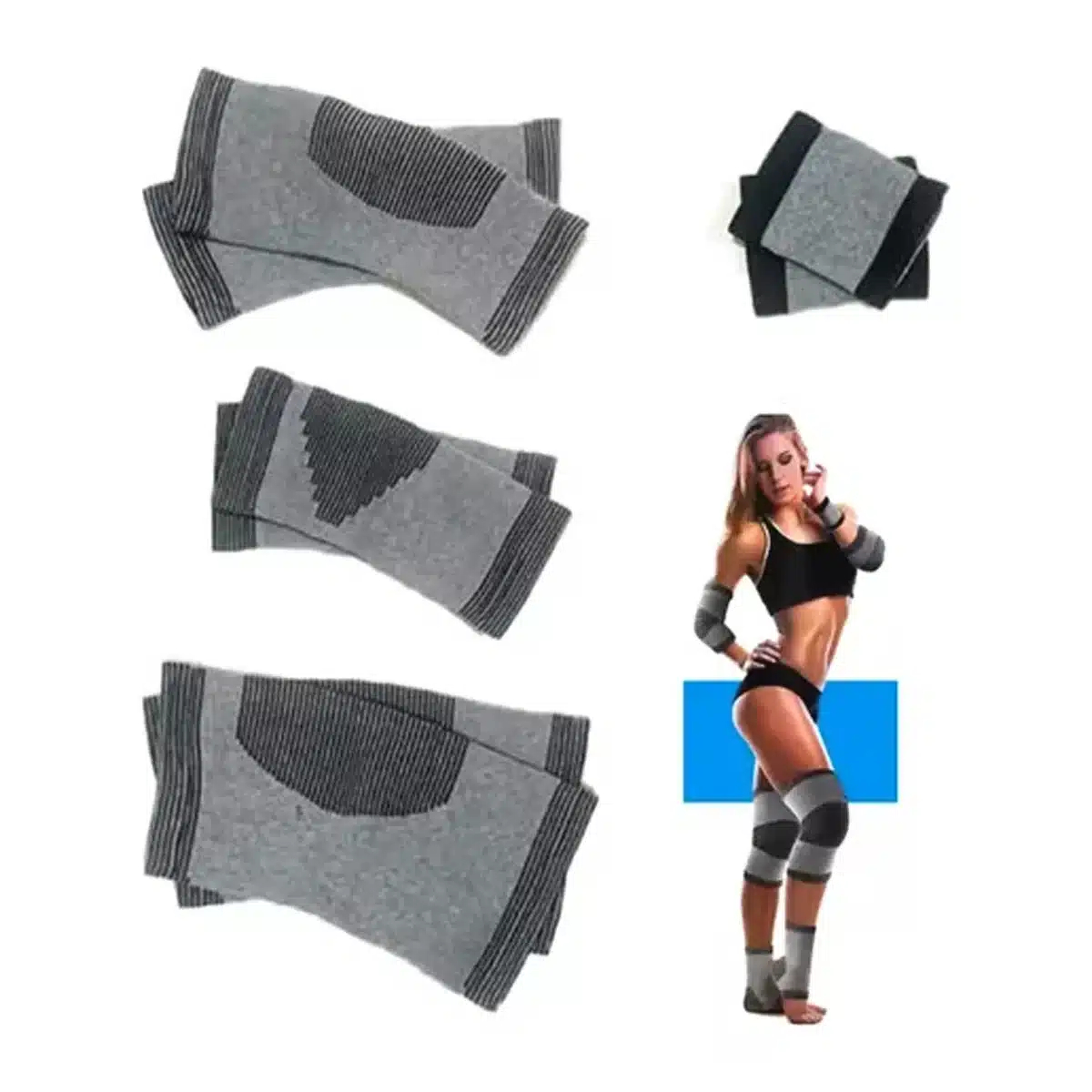 Το σετ περιλαμβάνει 8 τεμάχια: 2 για γόνατα, 2 για αγκώνες, 2 για καρπούς, 2 για αστραγάλους – πλήρης προστασία και υποστήριξη για όλες τις κύριες αρθρώσεις.