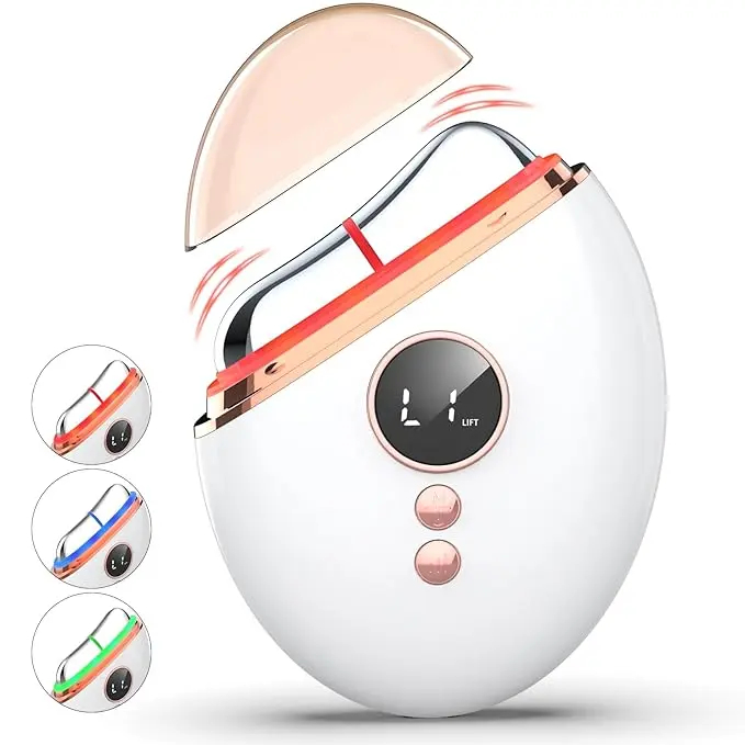 Η καινοτόμος συσκευή Gua Sha με τεχνολογία EMS προσφέρει ολοκληρωμένη φροντίδα προσώπου, συνδυάζοντας μικρορεύματα, δόνηση, θερμότητα και φωτεινή θεραπεία LED 3 χρωμάτων.