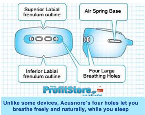 Α Το Acusnore εφαρμόζει απόλυτα! H ειδική ανατομική του σχεδίαση ταιριάζει σε κάθε στοματική κοιλότητα. Δεν χρειάζεται φορμάρισμα πριν την χρήση του.