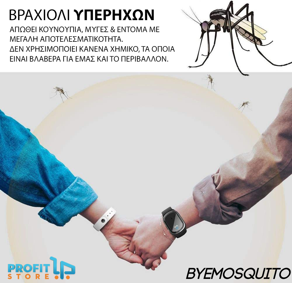 ByeMosquito - Η τεχνολογία ήρθε να λύσει ένα πρόβλημα αιώνων. Τα κουνούπια και οι μύγες δεν θα πλησιάσουν εσάς και την οικογένειά σας ποτέ ξανά. Γνωρίστε το εντομοαπωθητικό αντικουνουπικό βραχιόλι υπέρηχων, χωρίς χρήση τοξικών χημικών! Παράγει υπερήχους και δημιουργεί ένα ηχητικό φράγμα που απωθεί τα κουνούπια.