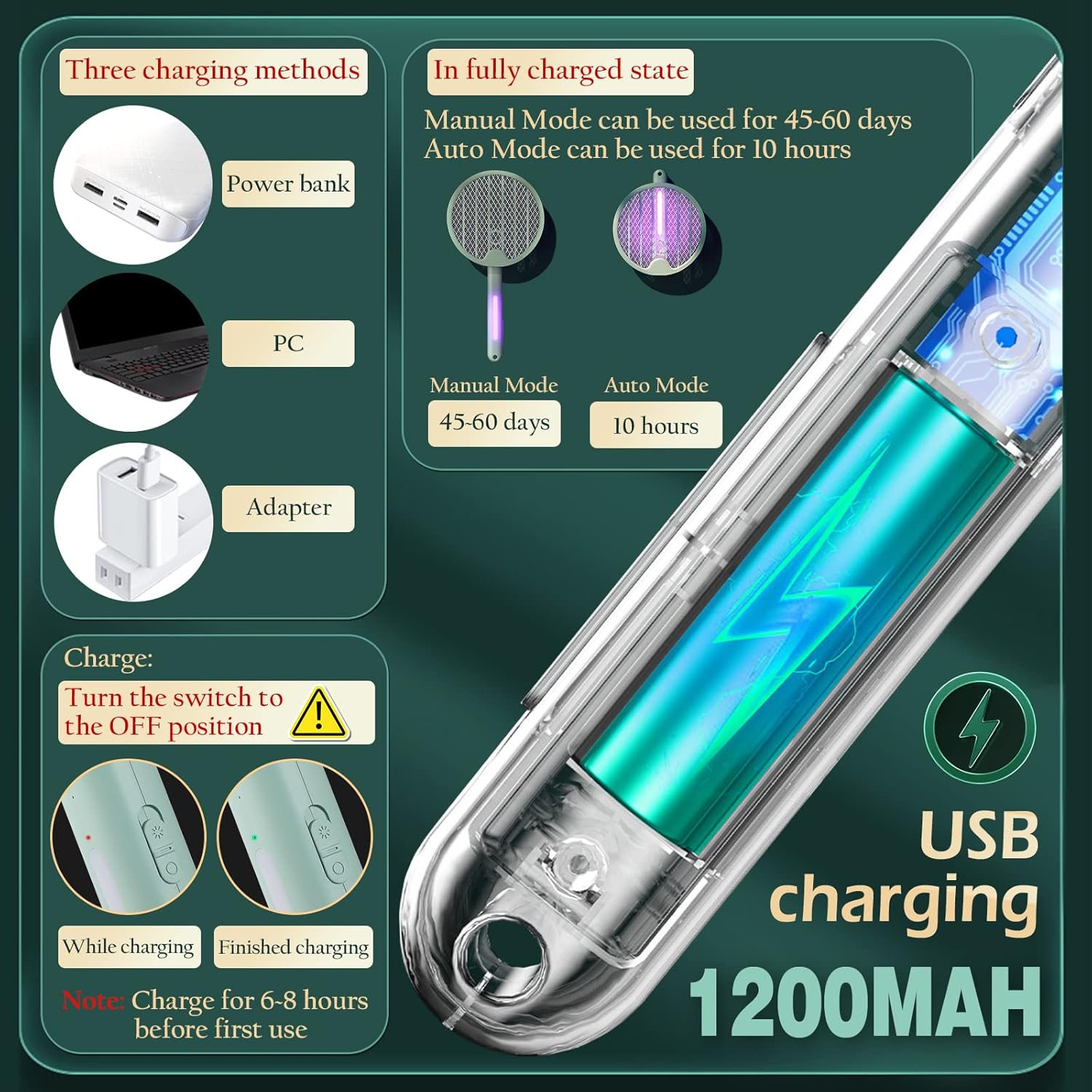Απολαύστε ξέγνοιαστες νύχτες χωρίς κουνούπια, με την έξυπνη ηλεκτρική ρακέτα κουνουπιών που συνδυάζει υψηλή τάση 3000V με UV παγίδα και ασφαλή κατασκευή τριπλής πλέξης.
