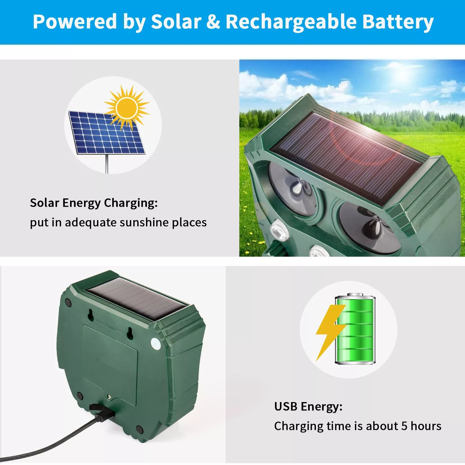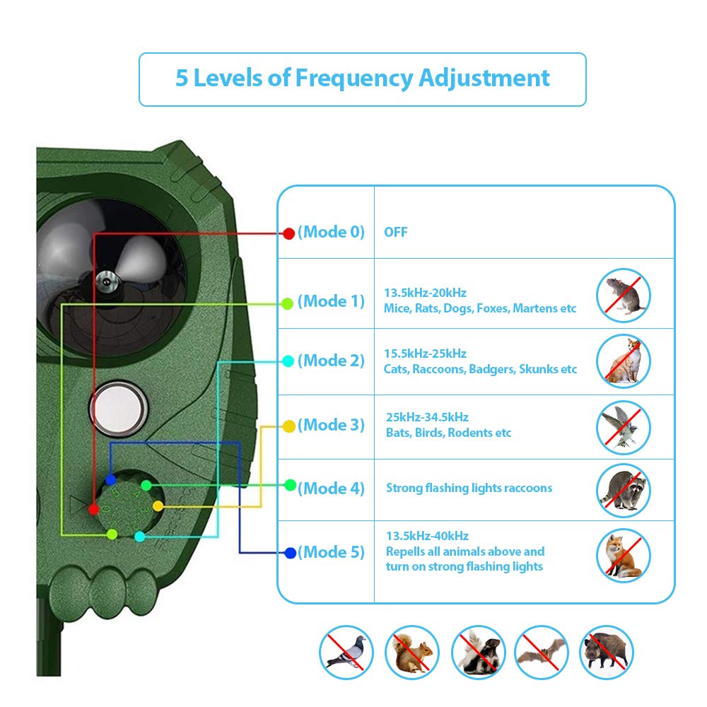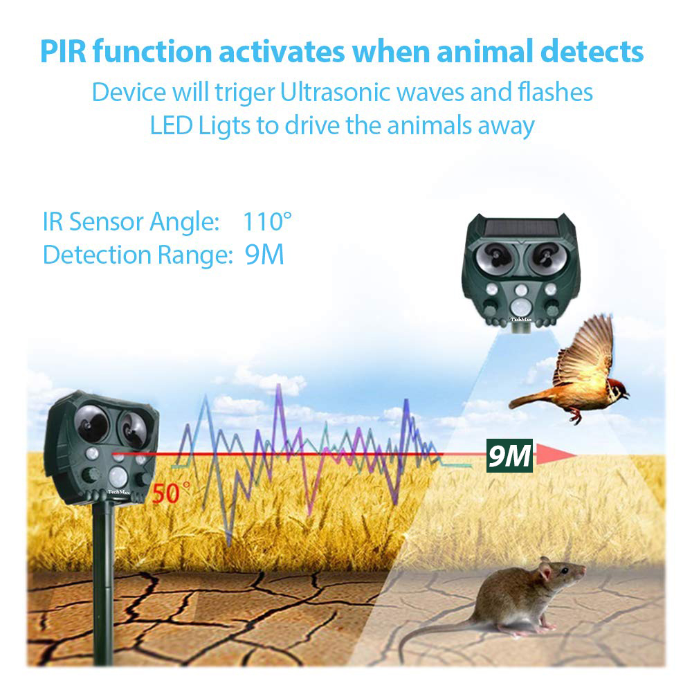 Χρησιμοποιεί διαφόρων συχνοτήτων ισχυρά υπερηχητικά και ηχητικά κύματα τα οποία μπορούν να τρομάξουν και να διώξουν από μικρά ζωάκια όπως τρωκτικά έως και μεγαλύτερα όπως αλεπούδες να πλησιάσουν τον χώρο που καλύπτει.