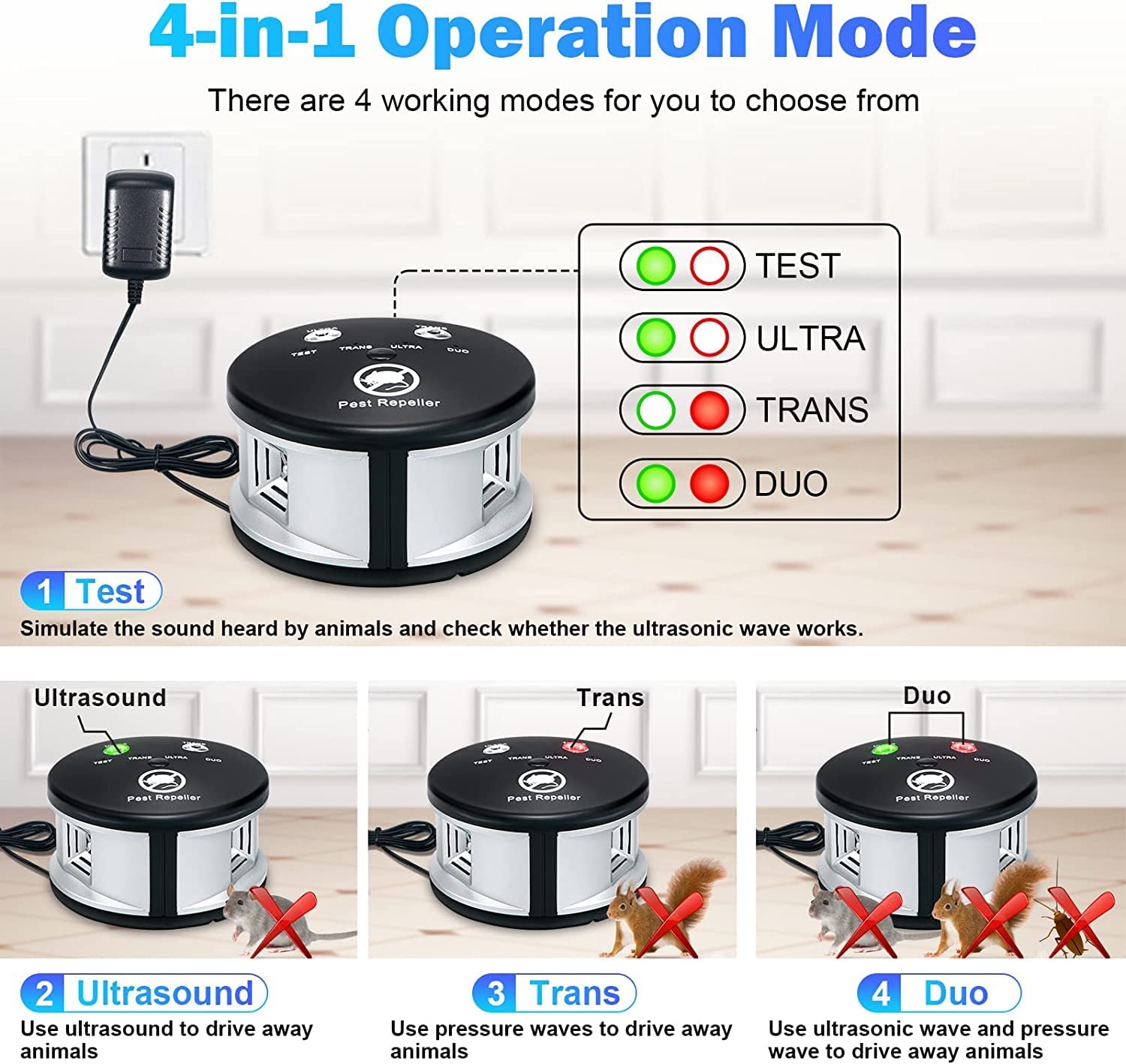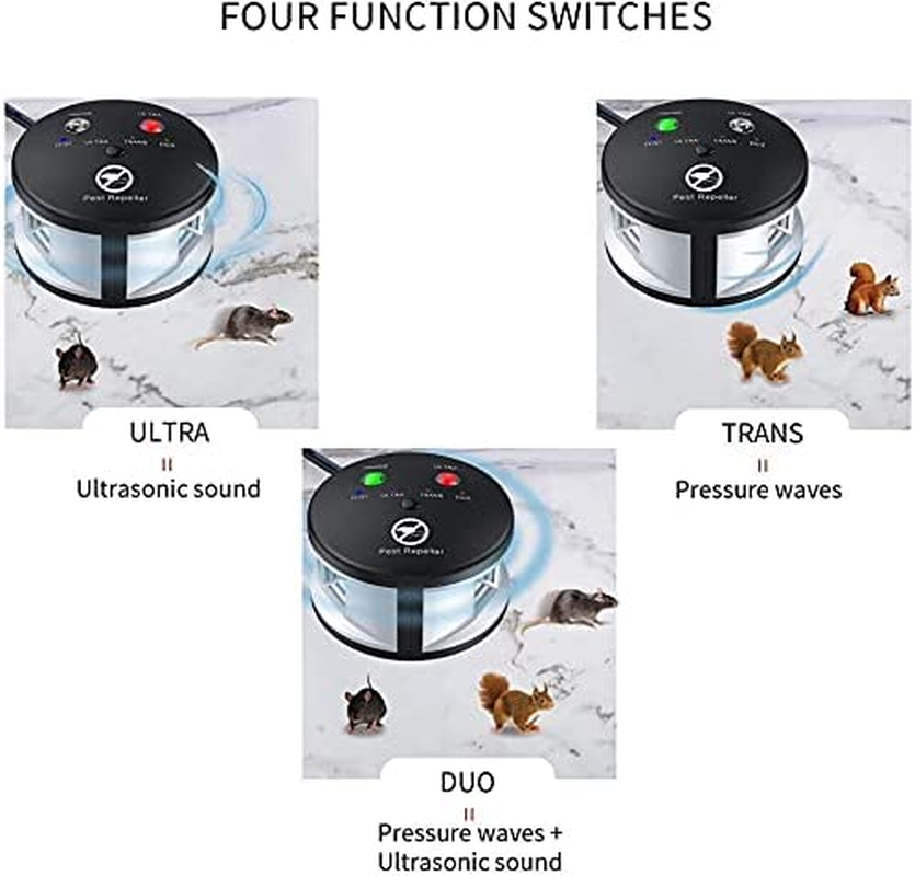 Απωθεί ποντίκια, αρουραίους και μικρά τρωκτικά. Ο υπέρηχος που εκπέμπει επηρεάζει τα ακουστικά νεύρα τους και καθιστά δυσάρεστη την παραμονή τους στην περιοχή κάλυψης. Οι υπέρηχοι αποτελούνται από υψηλής συχνότητας κύματα ήχου τα οποία συλλαμβάνονται από τα περισσότερα ζώα αλλά είναι άηχα στους ανθρώπους.