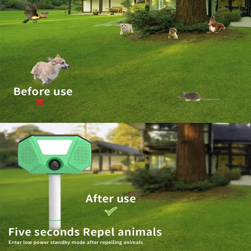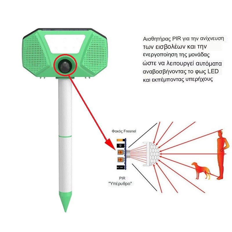 Έξυπνη συσκευή η οποία απωθεί τα ζώα χωρίς να τα βλάψει και χωρίς την χρήση χημικών, επηρεάζοντας τα ακουστικά τους νεύρα, κάτι που καθιστά δυσάρεστη την παραμονή τους στην περιοχή κάλυψης.