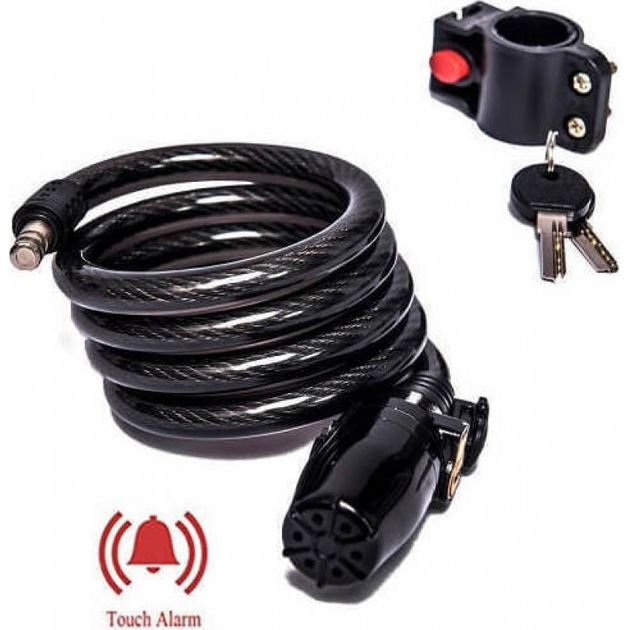 Διπλή ασφάλεια και προστασία για το ποδήλατο, το μηχανάκι ή τη μηχανή σας. Θωρακισμένο, ανθεκτικό και στιβαρό συρματόσχοινο με ενσωματωμένο συναγερμό που ενεργοποιείται αυτόματα σε περίπτωση απόπειρας κλοπής. Η ένταση του συναγερμού είναι 99dB.