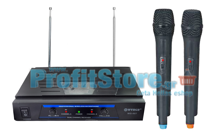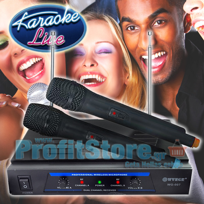 VHF Ψηφιακό Ασύρματο Σύστημα 2 ασύρματων μικροφώνων για ΚΑΡΑΟΚΕ, που συνδέεται εύκολα με οποιαδήποτε σύστημα διαθέτει είσοδο ήχου (audio input) και θα έχετε ένα υψηλής πιστότητας ημι-επαγγελματικό σύστημα Karaoke, με 2 ασύρματα μικρόφωνα που μπορούν να λειτουργήσουν ταυτόχρονα χωρίς παρεμβολές !