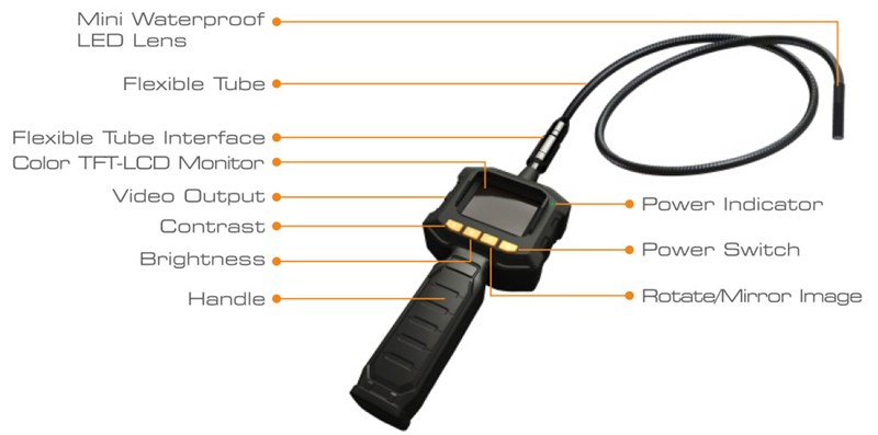 Πρόκειται για μία μίνι ψηφιακή κάμερα 9 χιλιοστών με έγχρωμη οθόνη TFT-LCD 2,3 ιντσών και ανάλυσης 640x480 pixels πάνω σε έναν λεπτό και εύκαμπτο σωλήνα 1 μέτρου, που λειτουργεί τηλεσκοπικά ως περισκόπιο και ενδοσκόπιο!