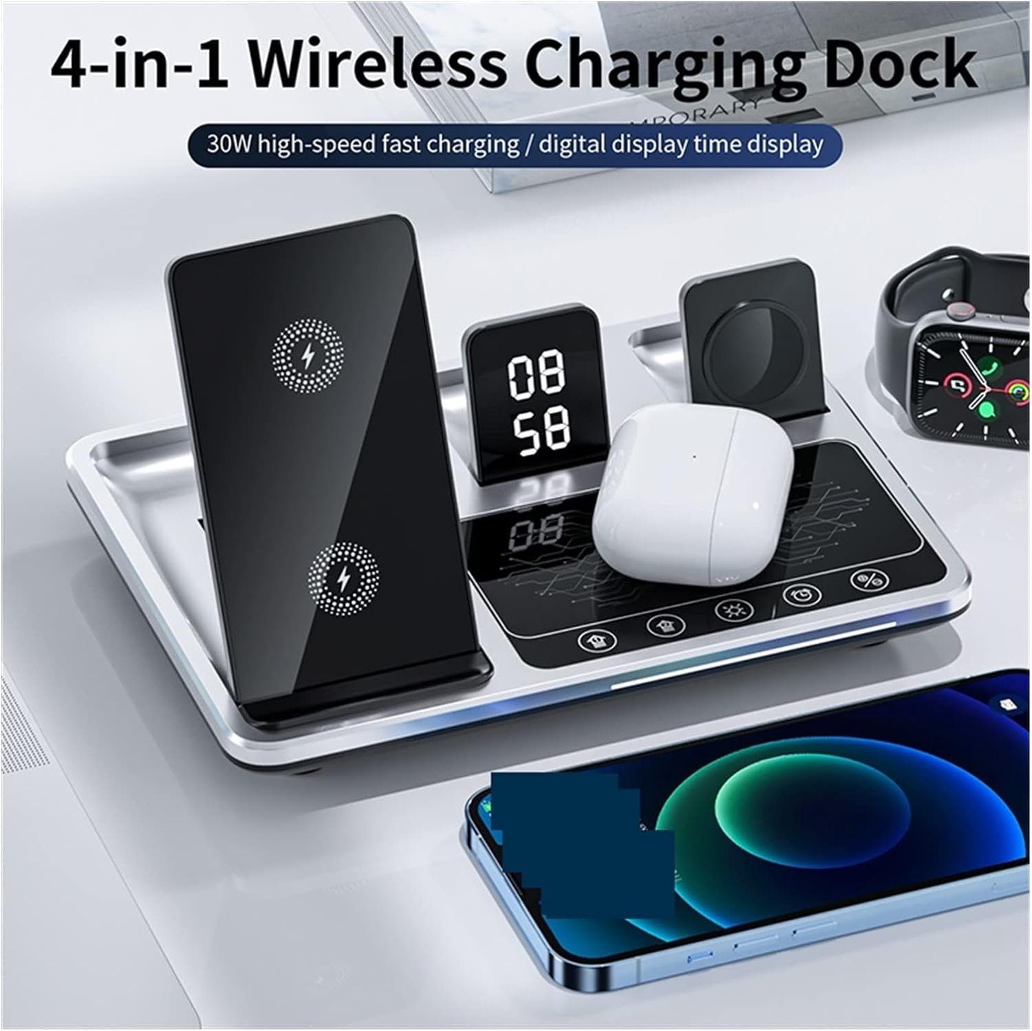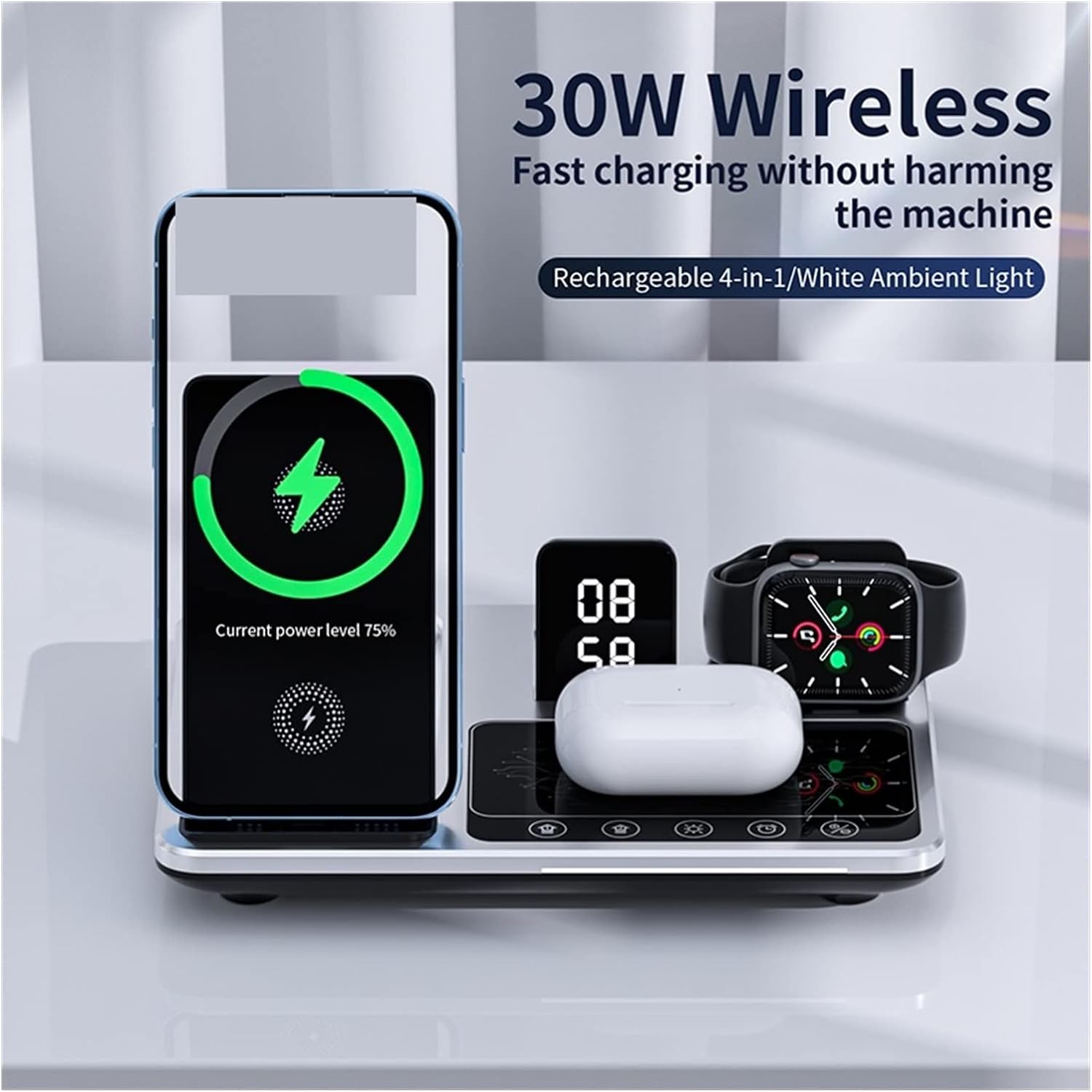 3 σε 1 Πολυλειτουργική Βάση Ασύρματης Φόρτισης Qi με Ψηφιακό Ρολόι & Φωτισμό