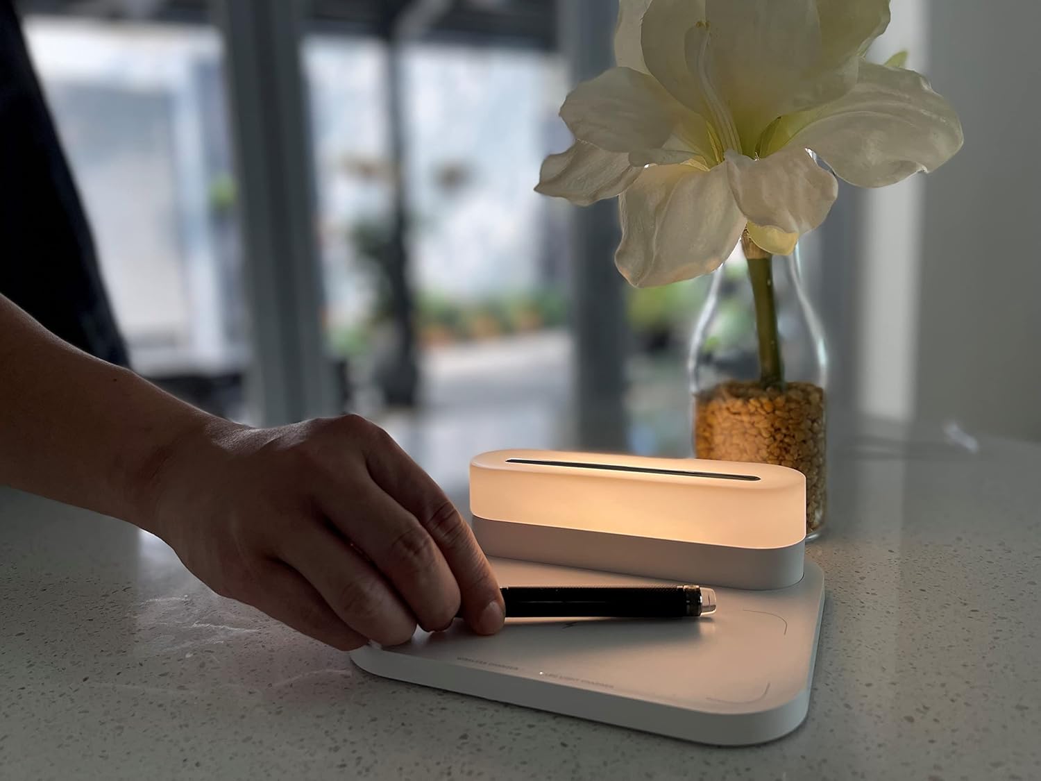 - Προσαρμόσιμος φωτισμός: Με διακόπτη αφής και τρεις ρυθμίσεις χρώματος LED (από ζεστό έως ψυχρό λευκό), μπορείτε εύκολα να προσαρμόσετε τη φωτεινότητα του χώρου σας. Φορτίζει πλήρως σε μόλις 3 ώρες και παρέχει αυτόματη φόρτιση όταν τοποθετείται στη βάση.