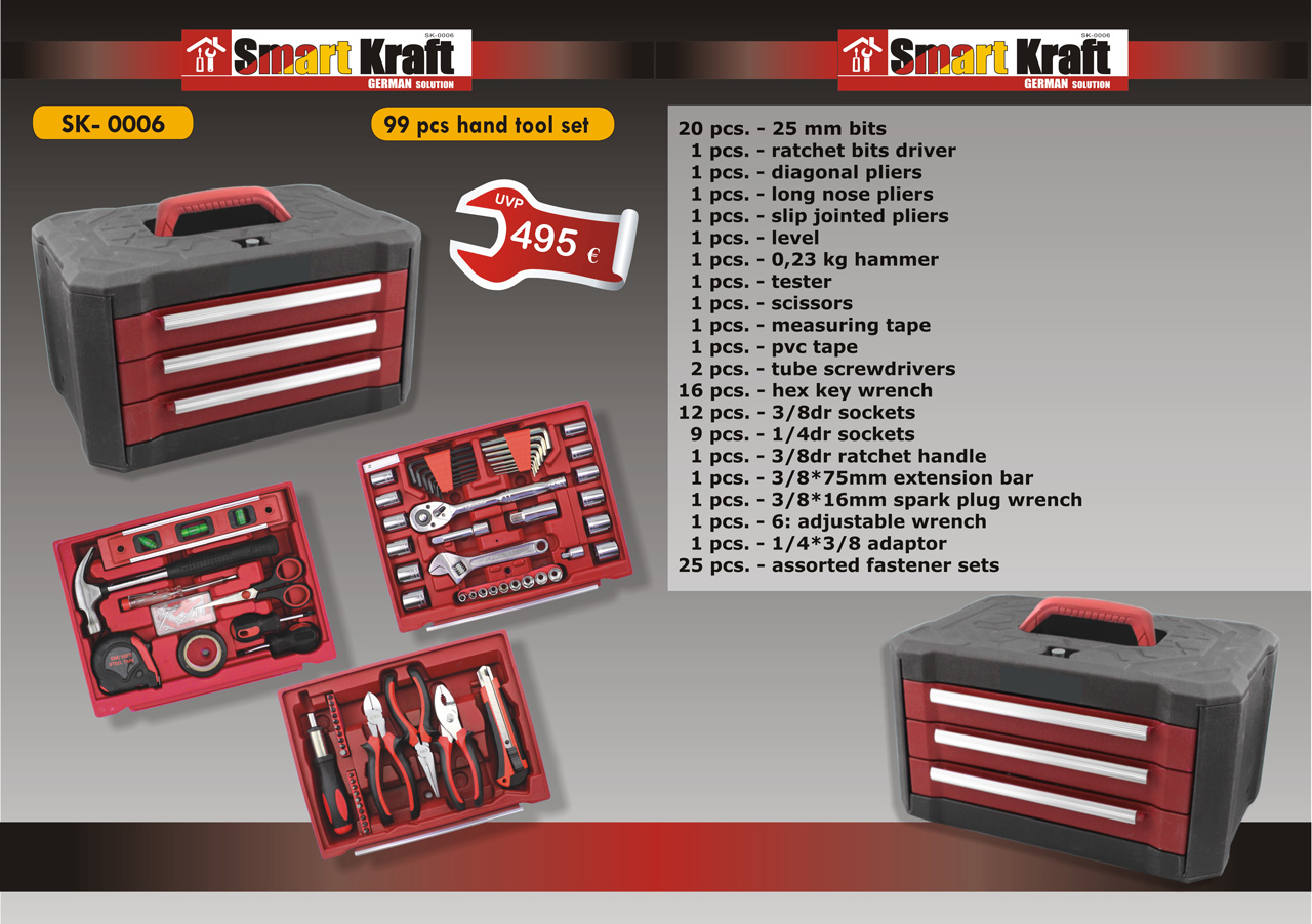 Εργαλειοθήκη χειρός SMART KRAFT SK-0006 που περιέχει 99 εργαλεία για όλα τα μαστορέματά σας, μικρά και μεγάλα...