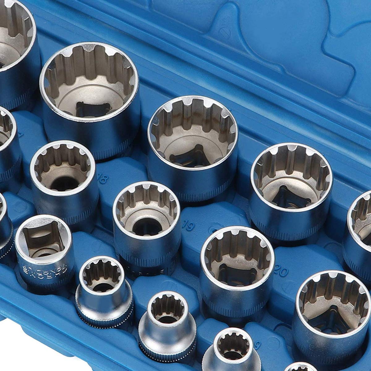Αυτό το σύνολο από 19 τεμάχια είναι κατασκευασμένο από υψηλής ποιότητας σκληρυμένο χάλυβα και επιτρέπει την εργασία με ακρίβεια. Το πλήρες σετ αποθηκεύεται με ένα λειτουργικό τρόπο, σε ένα σταθερό κιβώτιο.