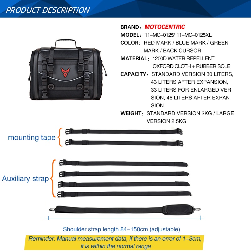 Παντώς καιρού, πολυχρηστικό μεγάλο σακίδιο ταξιδιού μοτοσυκλέτας. Μπορεί να χρησιμοποιηθεί και σαν Backpack σακίδιο πλάτης καθώς και να κρεμαστεί στον ώμο σαν απλό σακίδιο.