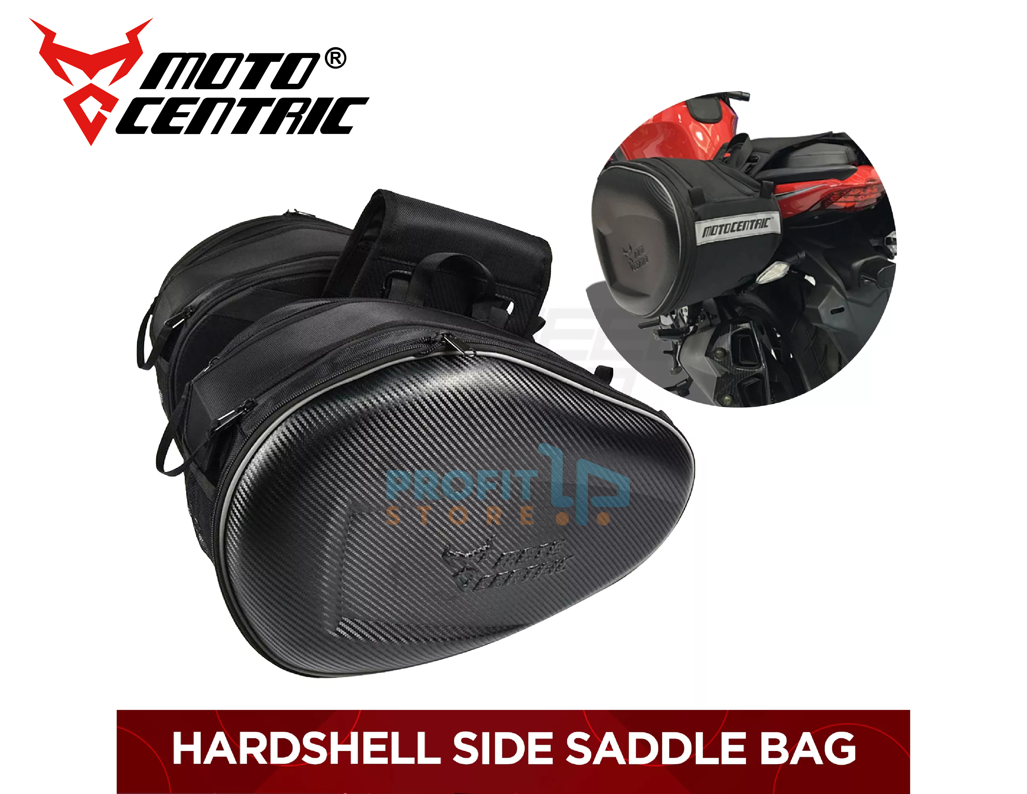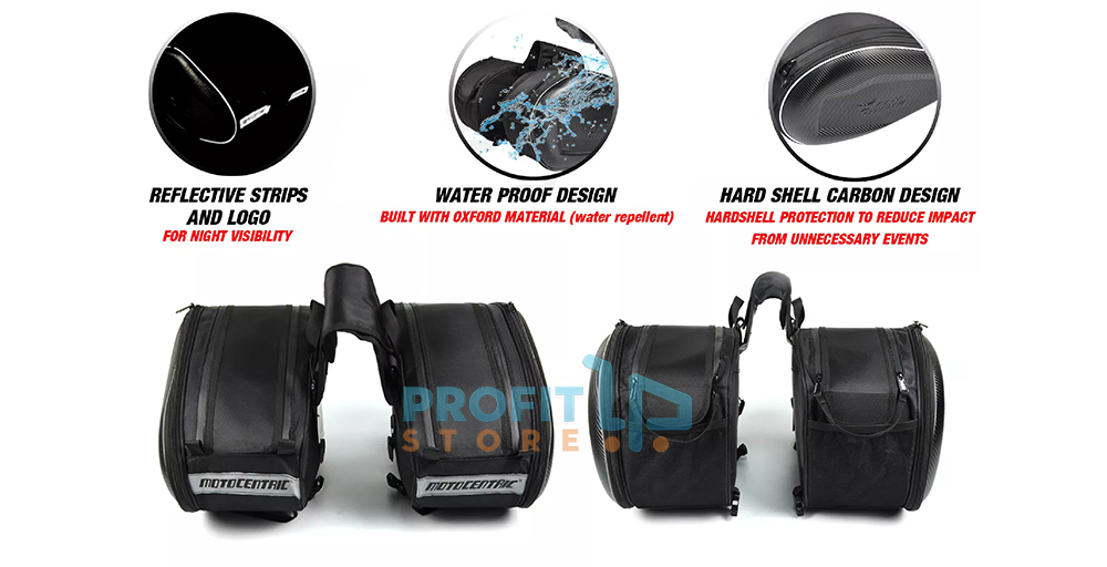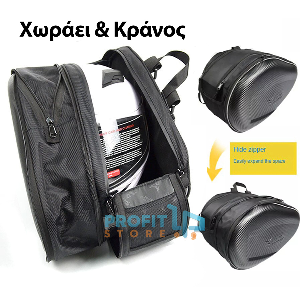 Παντώς καιρού, πρακτικό σετ με 2 μαύρα πλαϊνά σακίδια - σαμάρια για την μοτοσυκλέτα σας, με σκληρό "καπάκι" Carbon για μεγάλη ανθεκτικότητα και ασφάλεια στα αντικείμενα στο εσωτερικό τους.