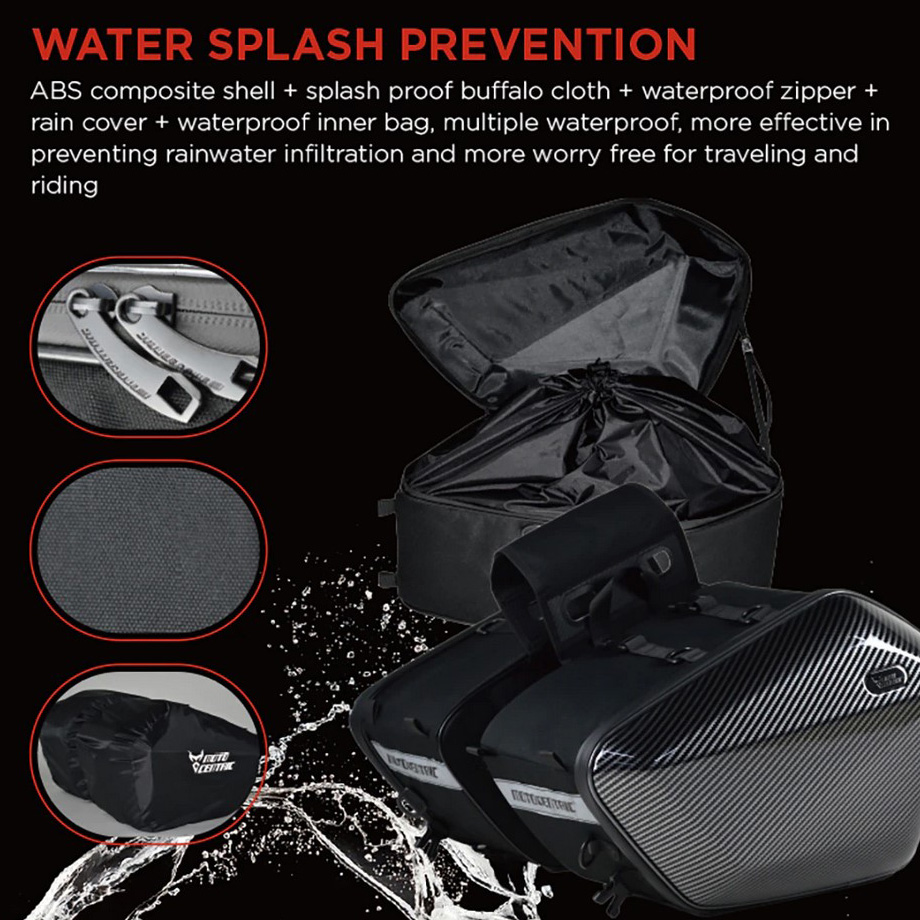 Τα σαμάρια αυτά είναι αδιάβροχα, παντώς καιρού με σκληρό "κέλυφος" Carbon, καθιστώντας τα από τα πιο οικονομικά και συγχρόνως ανθεκτικά, πρακτικά, πλαϊνά σακίδια - σαμάρια για την μοτοσυκλέτα σας.