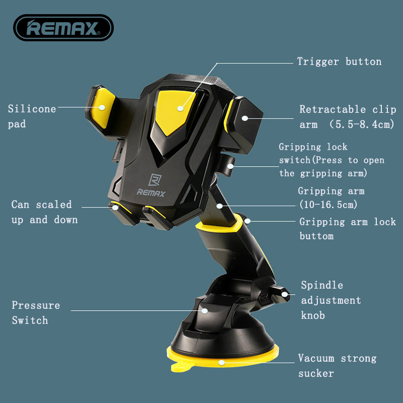 Η βάση στήριξης Remax RM-C26 είναι μια βάση με ισχυρή βεντούζα που τοποθετείται στην κονσόλα ή το παρμπρίζ του οχήματος. Η βάση περιστρέφεται σε κάθε κατεύθυνση ώστε να έχετε την κατάλληλη οπτική επαφή της συσκευής και να μην αποσπάται το βλέμμα από το δρόμο.