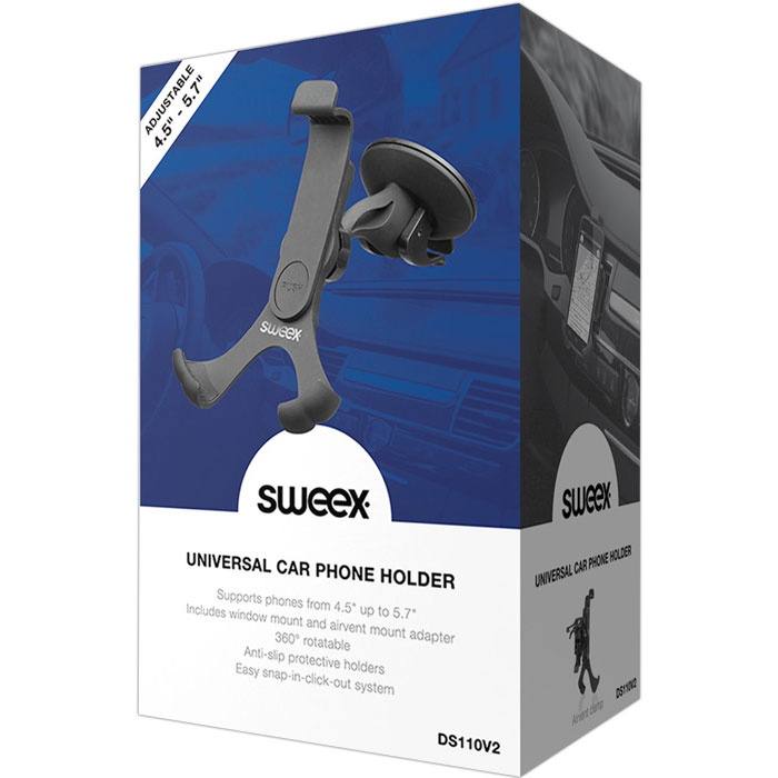 Universal βάση στήριξης αυτοκινήτου, ιδανική για συσκευές από 4.5" έως και 5.7". Διαθέτει σύστημα εύκολης τοποθέτησης (snap-in-click-out) αλλά και προστατευτικά πλαϊνά για την μέγιστη δυνατή προστασία και σταθερότητα της συσκευής. Μπορεί να περιστραφεί 360 μοίρες για την βέλτιστη δυνατή γωνία θέασης. Συμπεριλαμβάνονται 2 εξαρτήματα τοποθέτησης, ένα για το παρμπρίζ και ένα για τον αεραγωγό.
