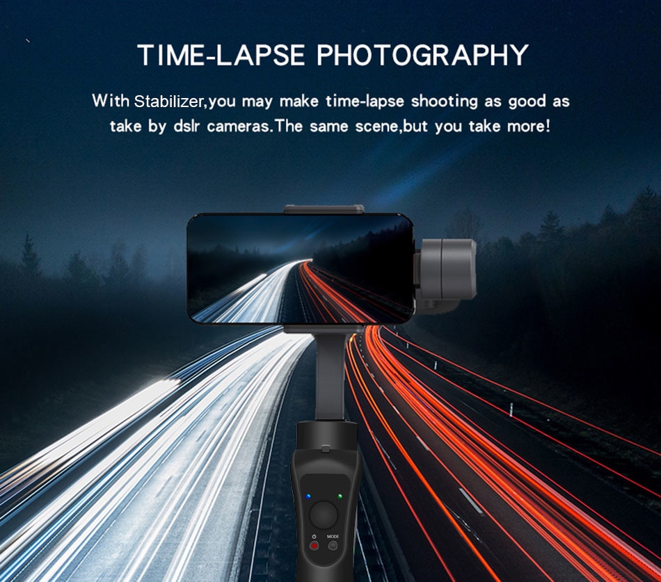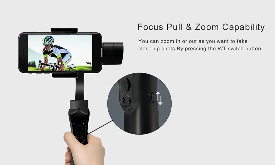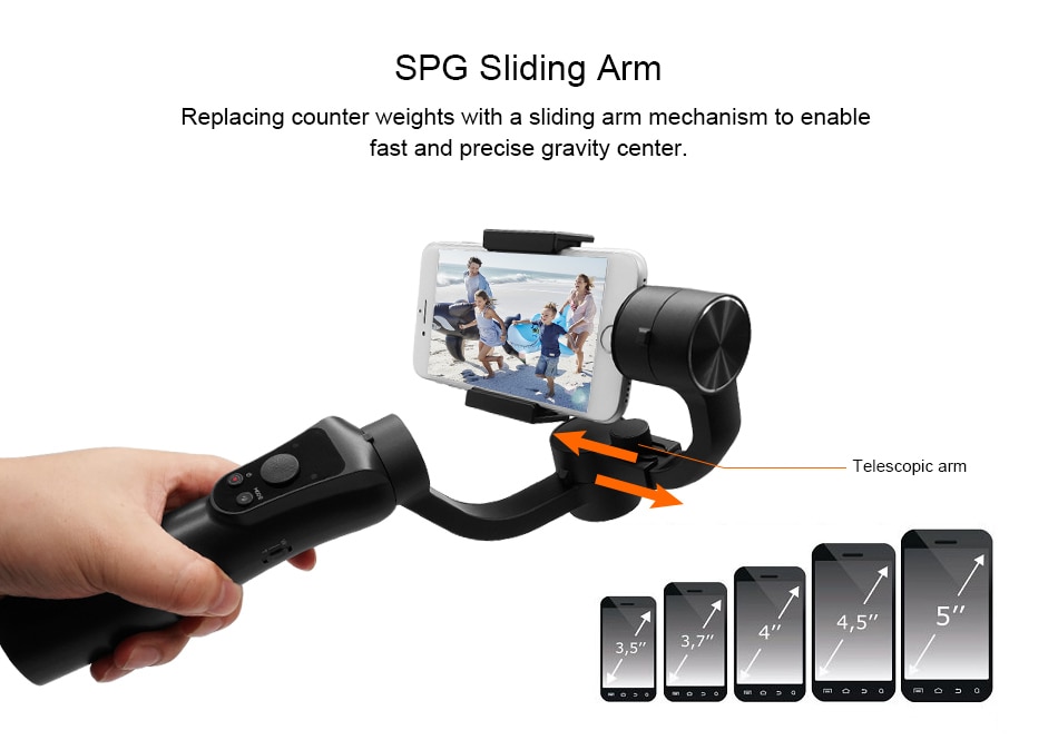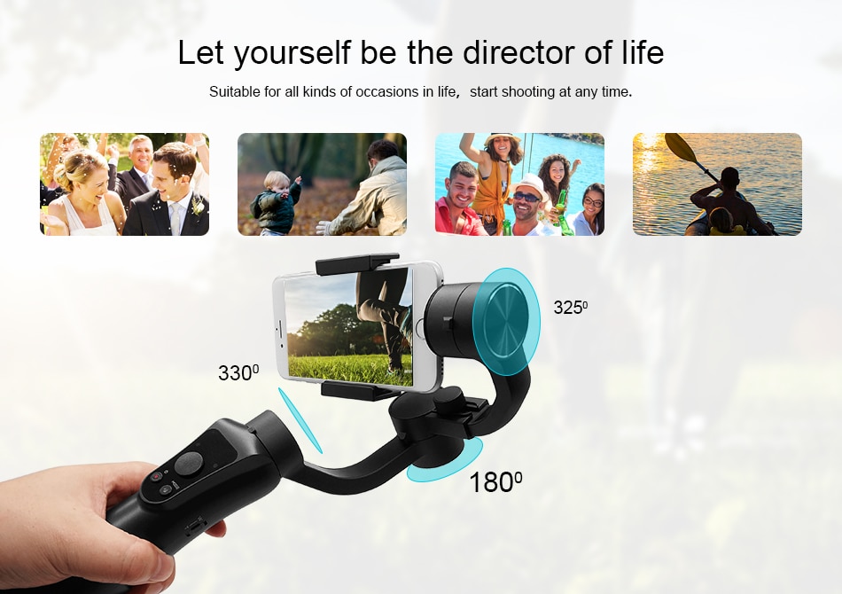 Χειροκίνητος σταθεροποιητής stick εικόνας τριών αξόνων (Gimbal), συμβατός με το σύνολο των smartphones, με κορυφαίο σύστημα σταθεροποίησης και εξαιρετικά εύκολος στην χρήση του. Είναι bluetooth και μπορεί να συνδεθεί με το κινητό σας ασύρματα μέσω App που διαθέτει για smartphones Android & Ios.