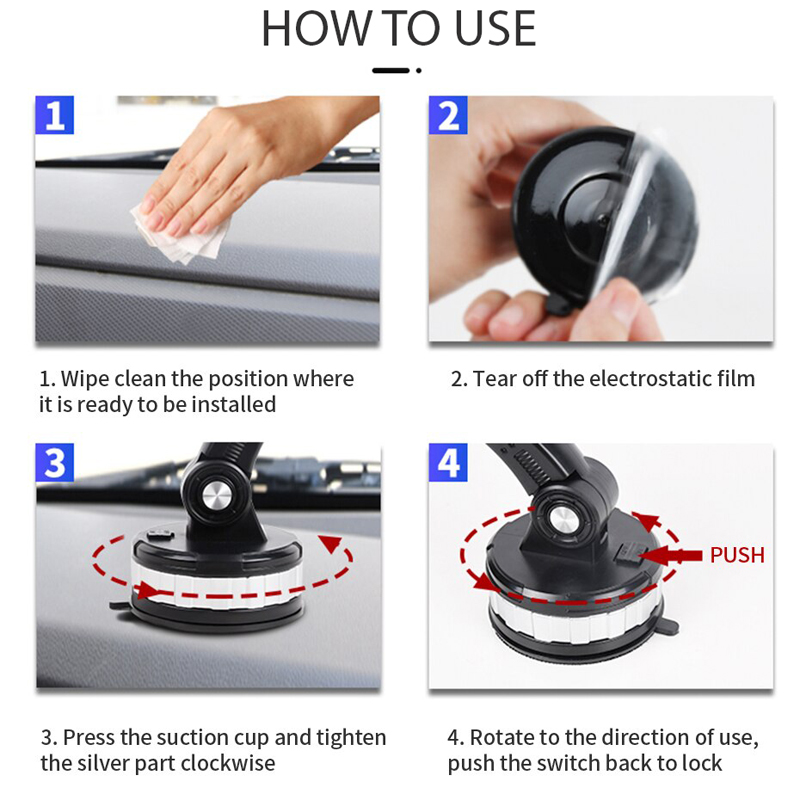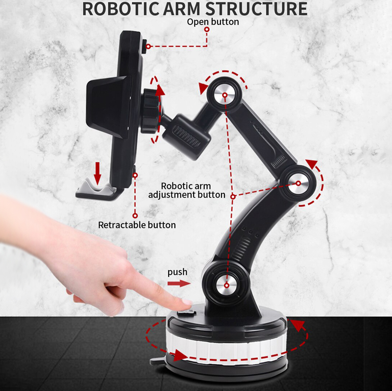 Περιστρεφόμενη Αναδιπλούμενη Βάση Κινητού Βεντούζας για Ταμπλό Αυτοκινήτου, Φορτηγού, Εύκολο Κλείδωμα Θέσης Ενός Κουμπιού Όλων Των Αξόνων OEM